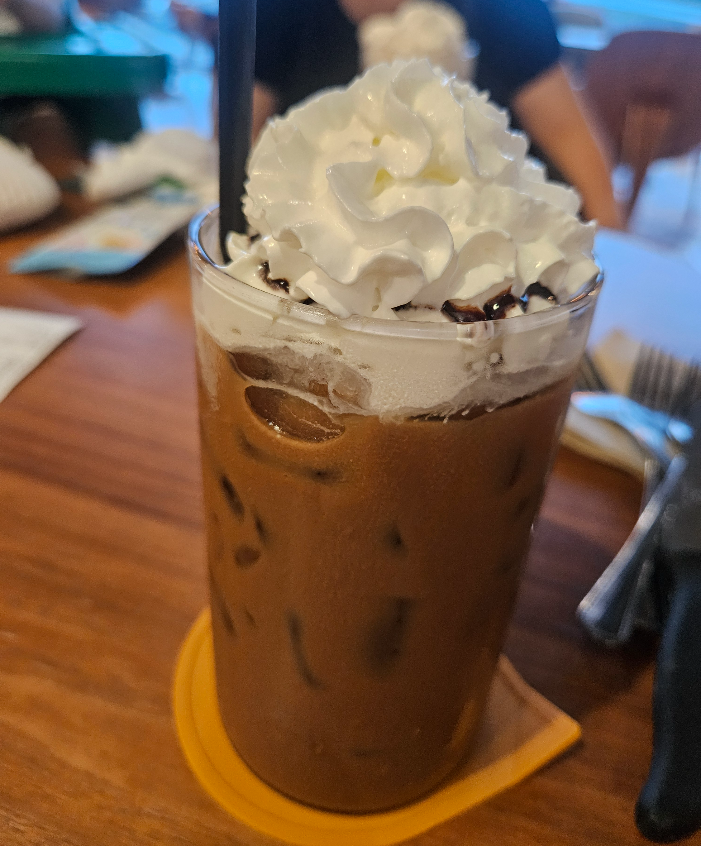 • 얼음 + 에스프레소 + 초콜릿 시럽 + 차가운 우유 + 휘핑