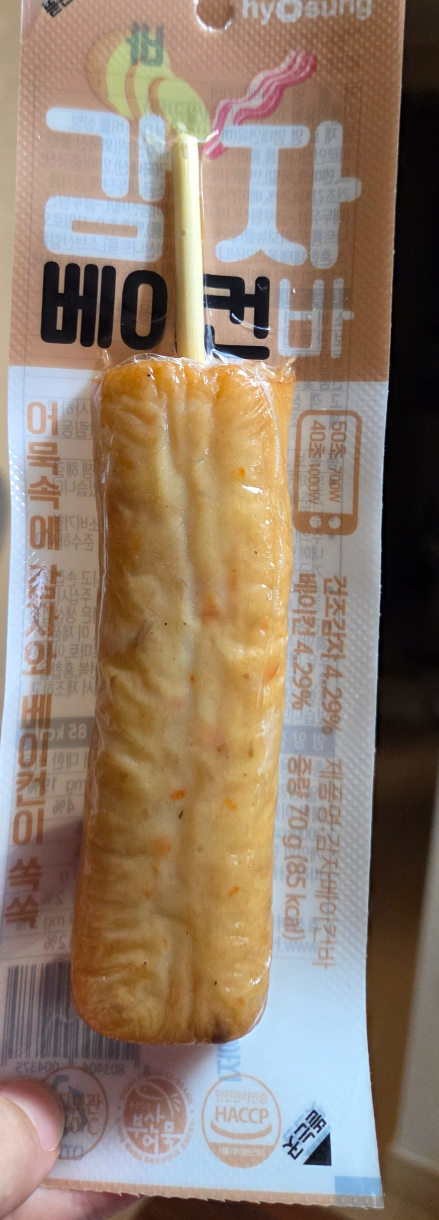 그중에서도 요즘 인기 급상승 중인 제품이 바로 **‘효성어묵 감자베이컨바’**예요.