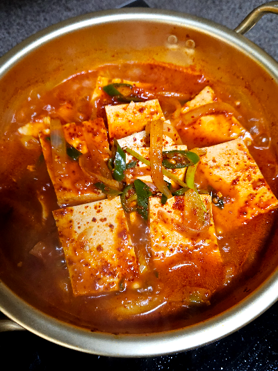 3. 적당량 물을 넣고 끓으면 두부를 넣고 끓인다.