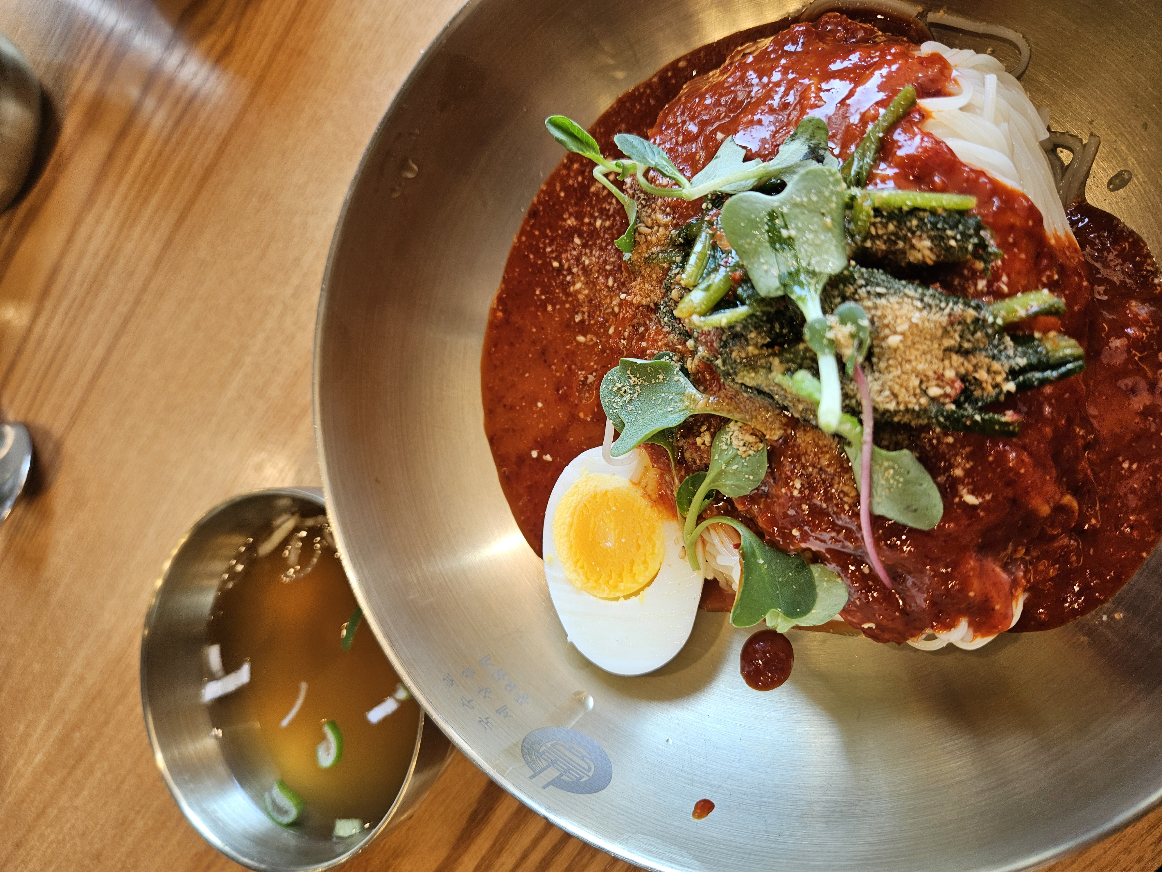함께 나온 육수는 멸치향이 제 입맛에는 좀 많이 강했지만 비빔국수와 잘 어울렸어요.