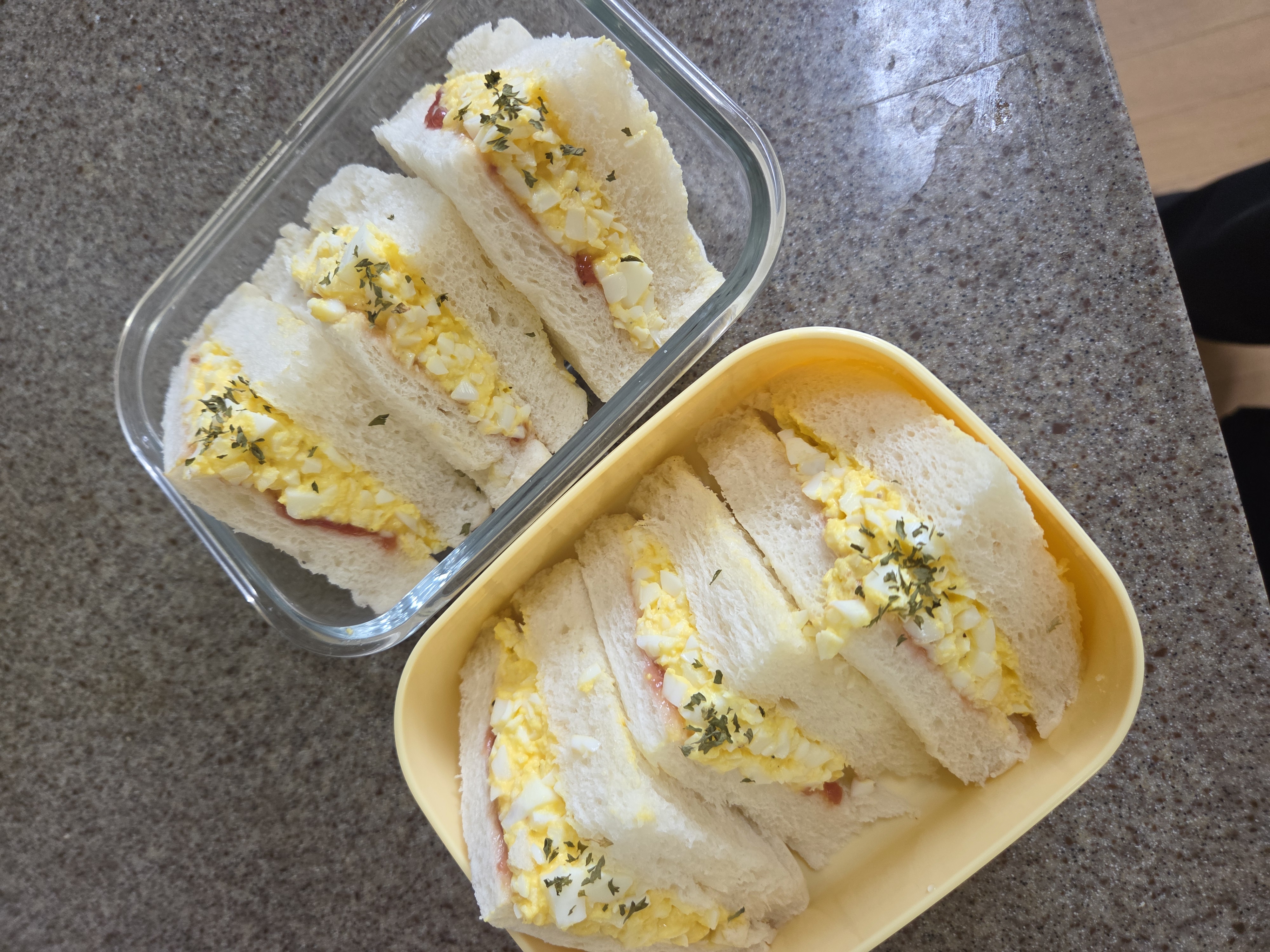 부드러운 달걀과 고소한 마요네즈, 그리고 촉촉한 식빵의 조화가 입맛을 자극하죠.