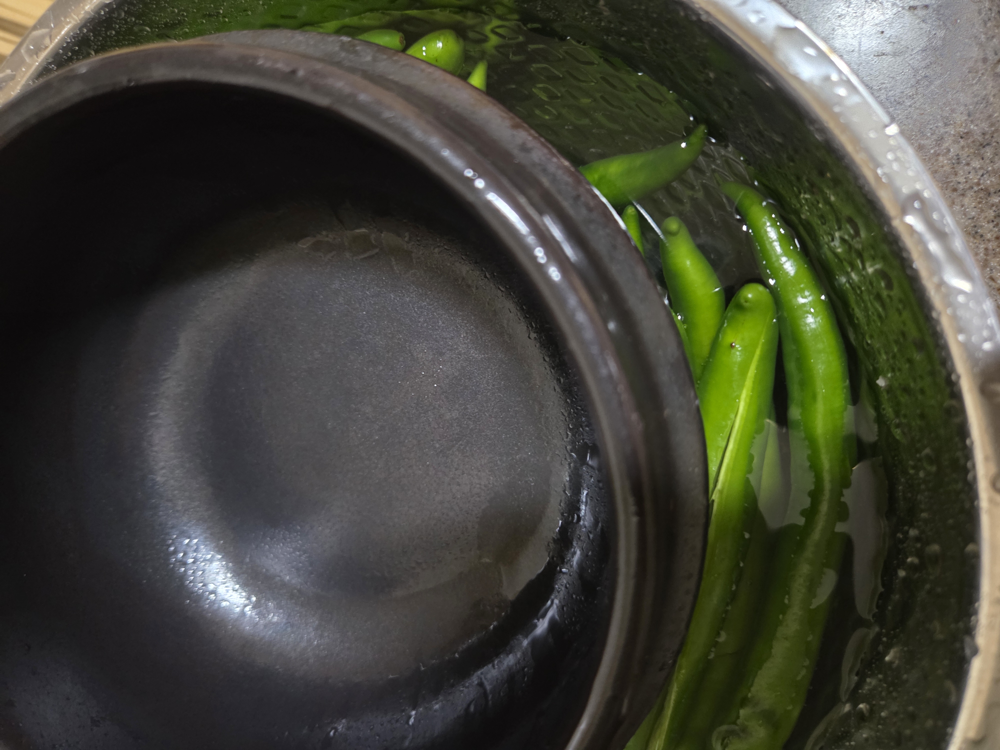 1. 절인 고추를 헹궈 물기를 제거합니다.