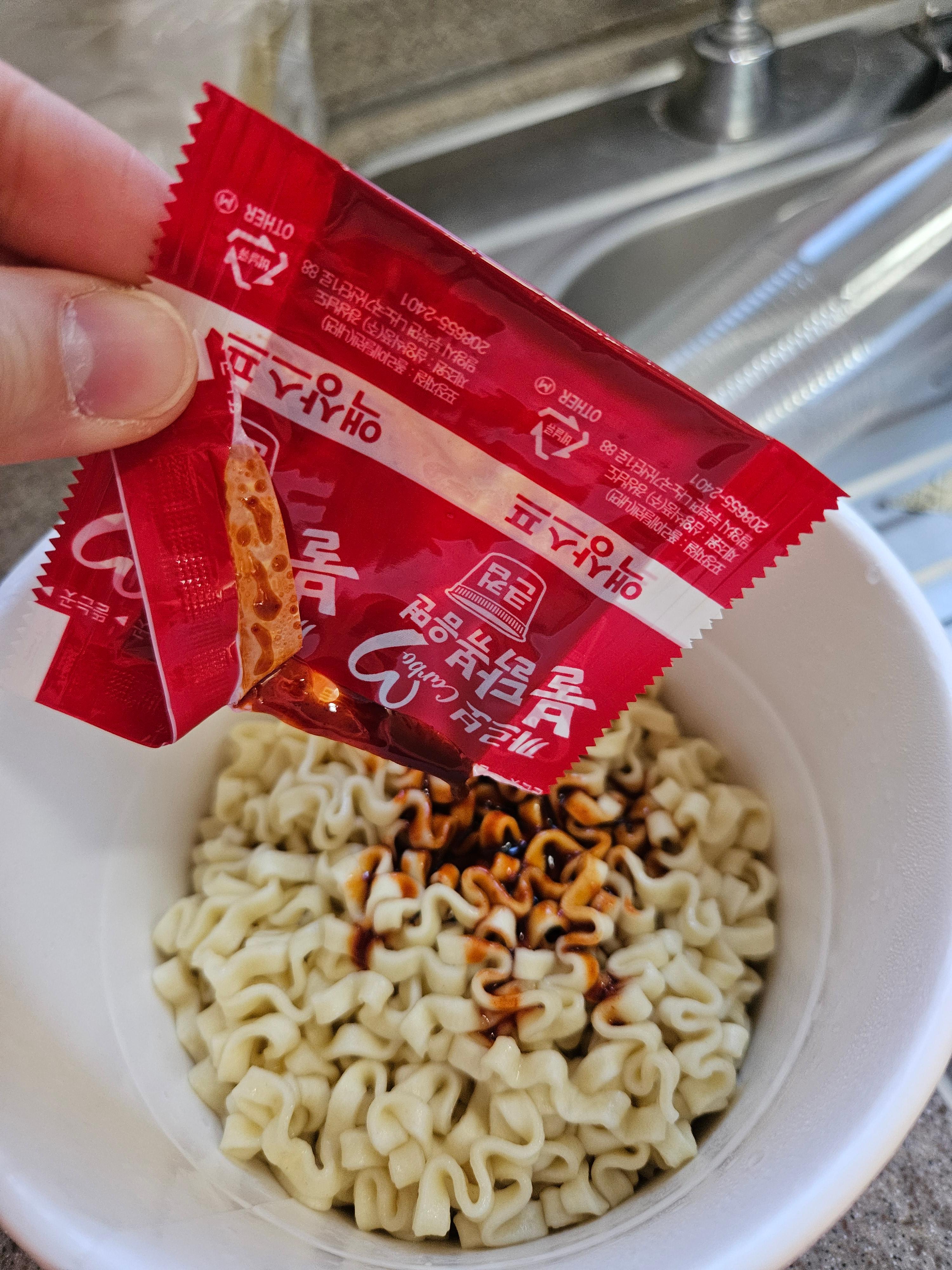5. 분말수프와 액상수프를 넣고 비벼 비벼~~ 먹는다