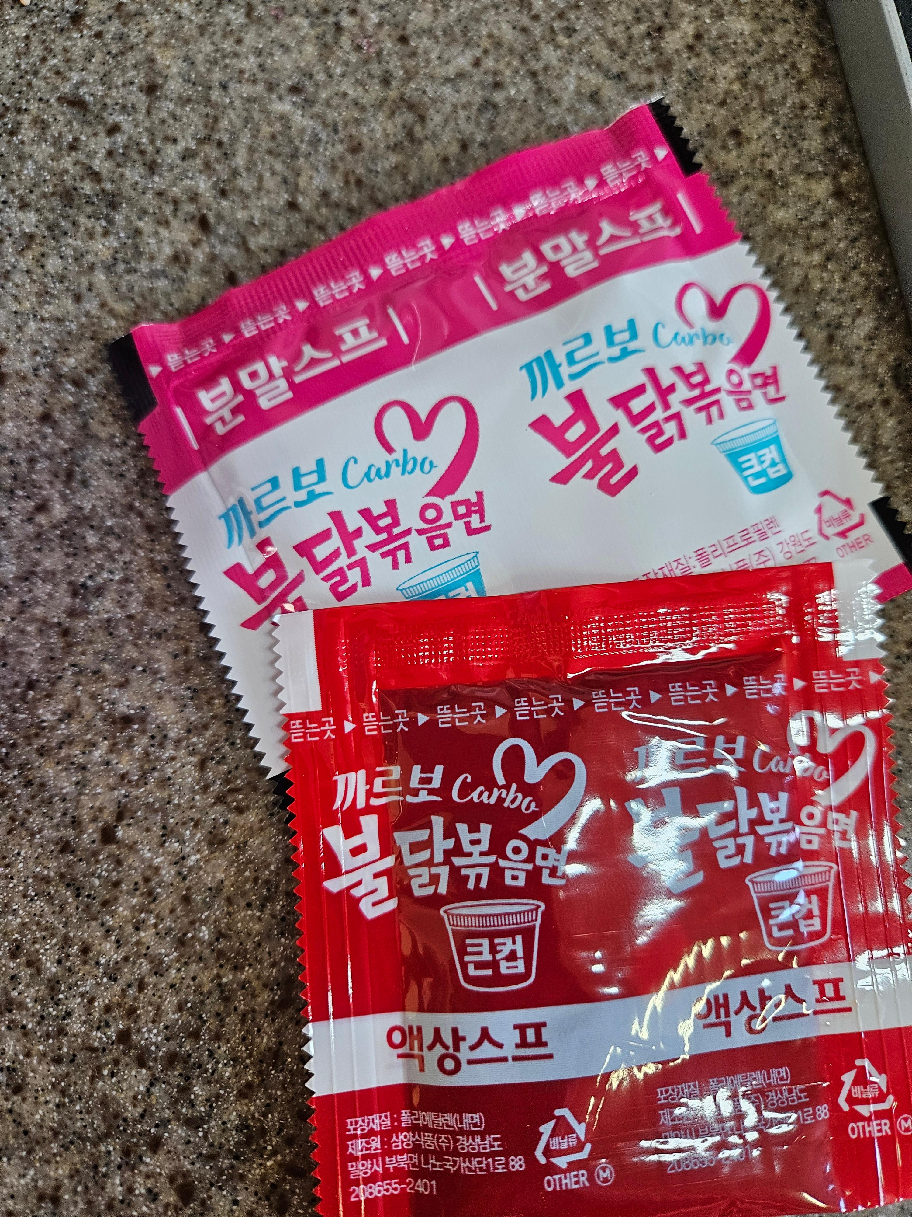 일반 불닭볶음면의 액상소스와 까르보 불닭볶음면만의 분말수프가 들어있네요