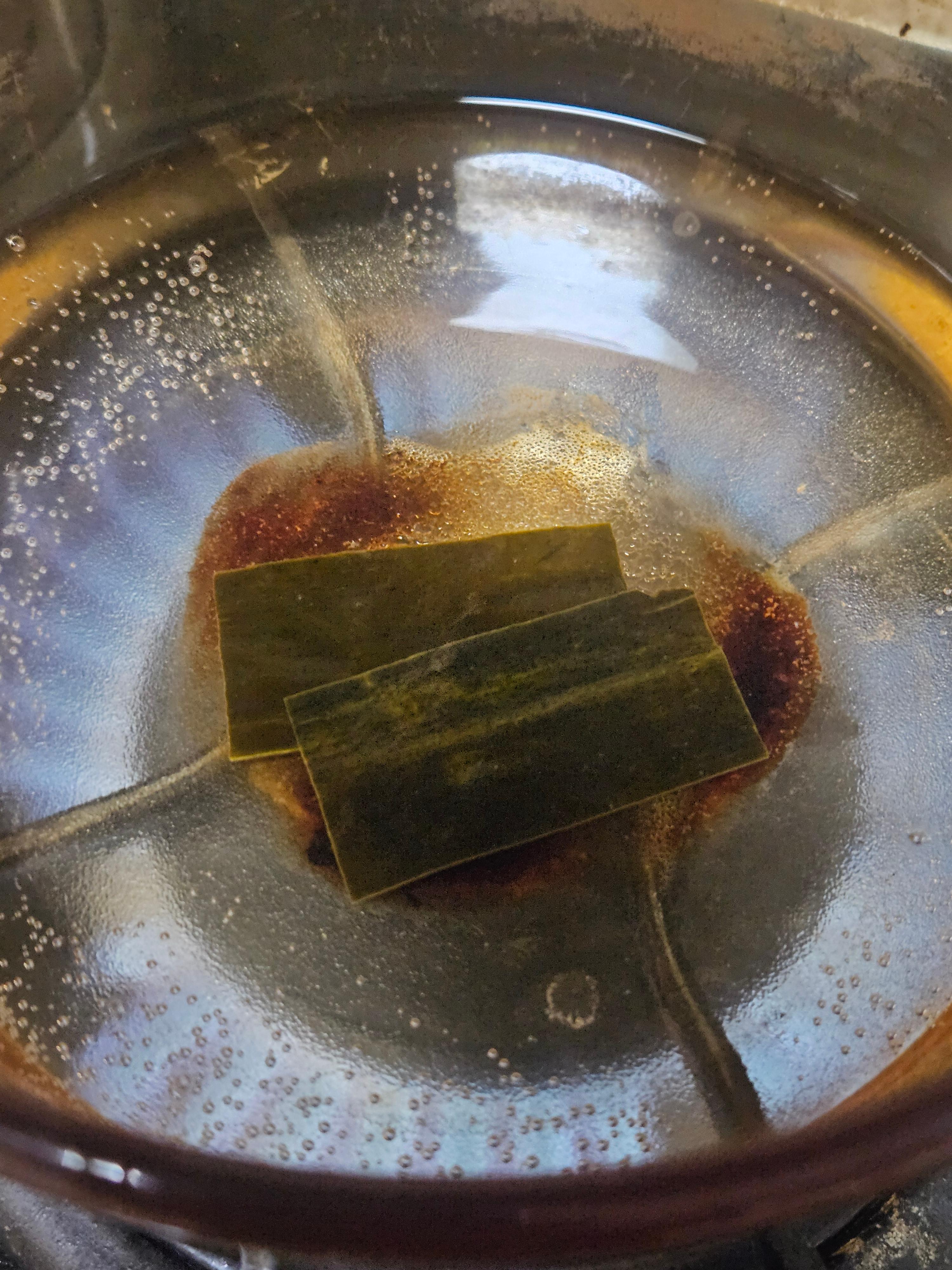 1. 물 550ml(종이컵 2컵과 3/4컵)에 다시마와 건더기스프를 넣고 물을 끓인다.