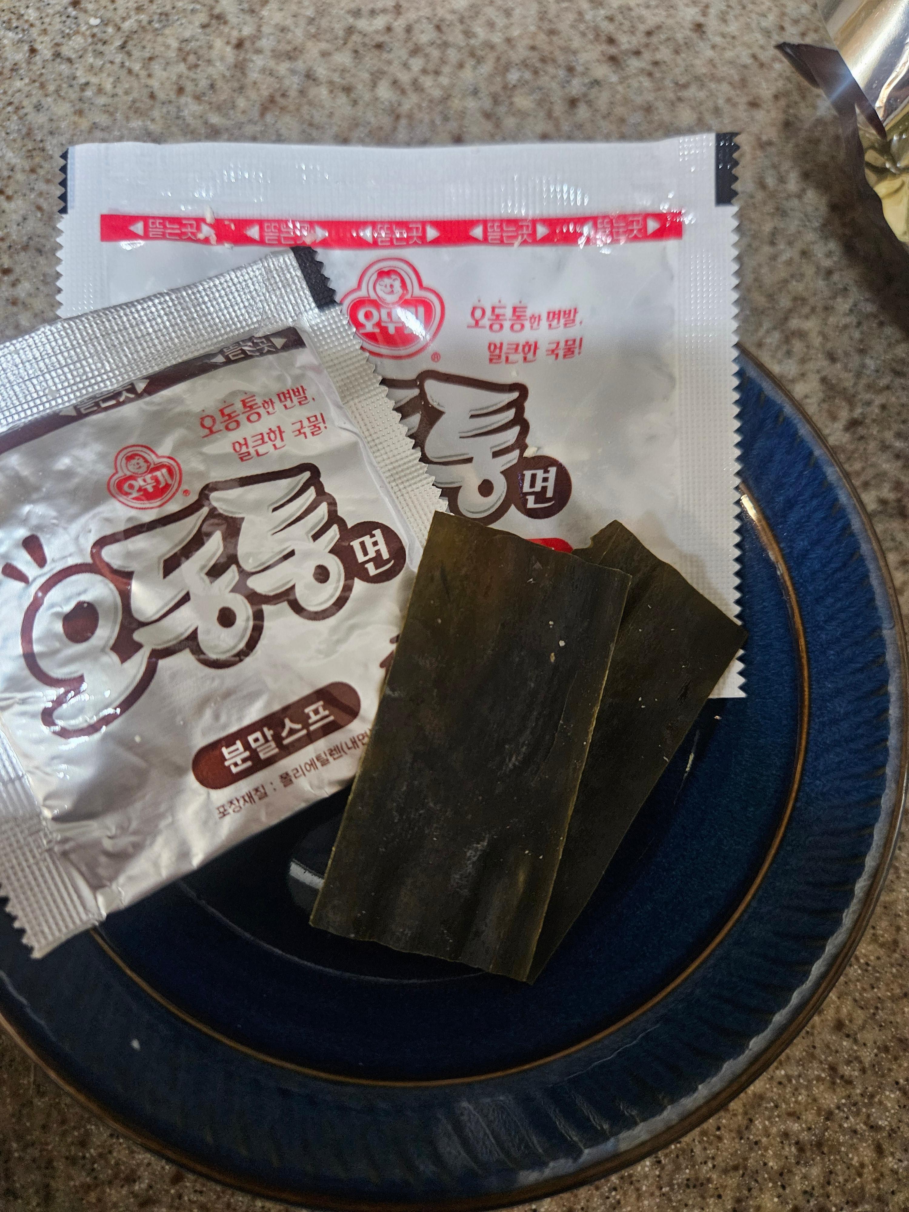 저는 다시마 먼저 넣어서 물에 끓인 후 팔팔 끓을 때 면, 건더기스프, 분말수프 모두 넣고