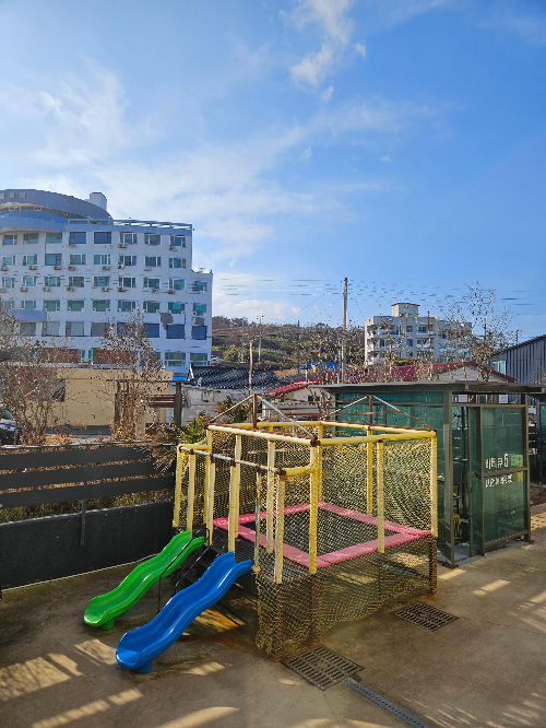 키즈시설은 간단히 놀기에 좋았어요. 방문했던 날 날씨가 춥지 않아서 아이들이 즐겁게 뛰어놀았답니다.