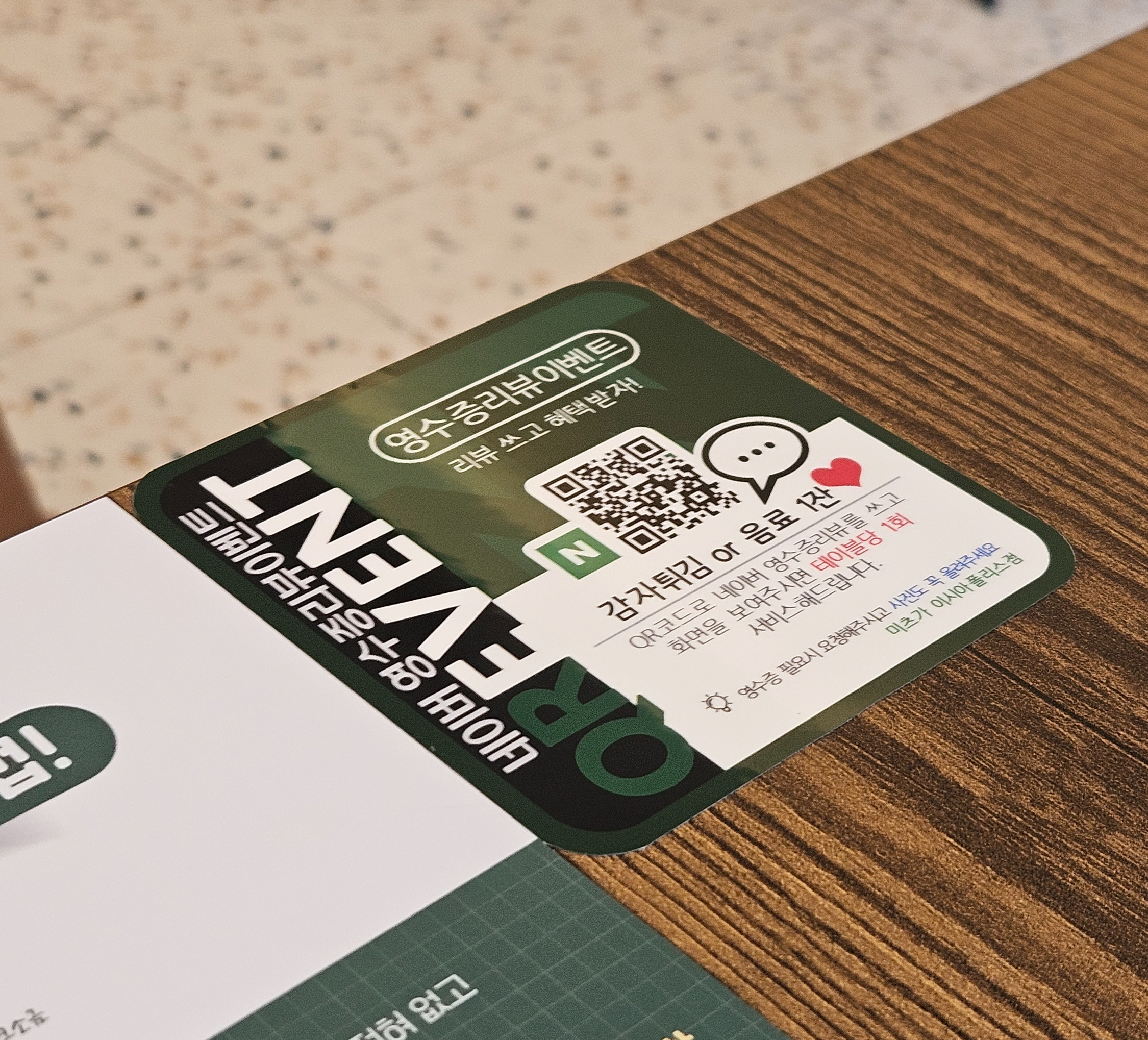 테이블에 보니 영수증 리뷰 이벤트가 있어요.