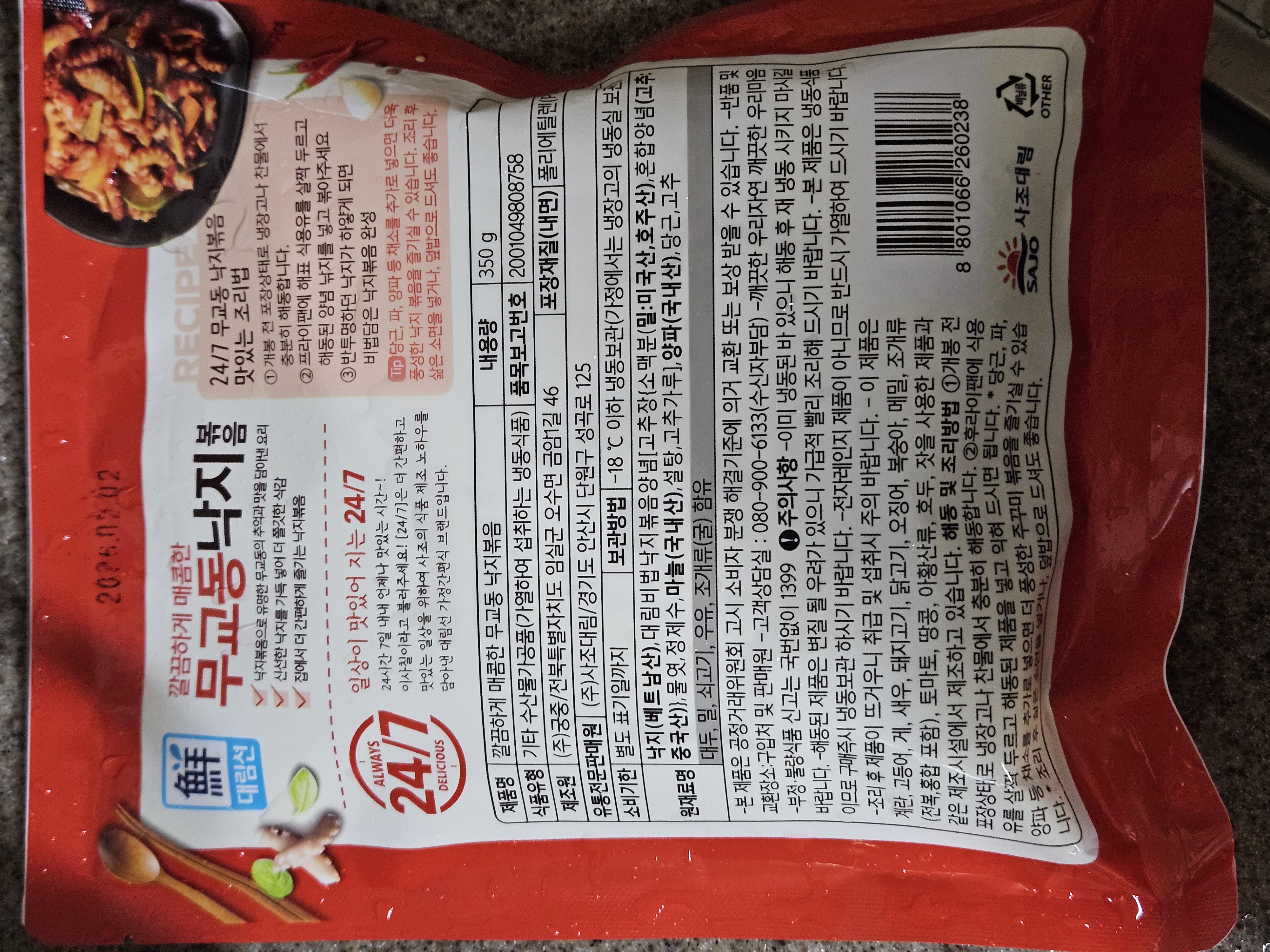 냉동식품임에도 불구하고 낙지 특유의 쫄깃함이 살아있습니다. 질기지 않도록 적절히 익히는 게 포인트예요. 너무 오래 볶으면 질겨지기 쉬우니 조리 시간은 꼭 지켜주세요.