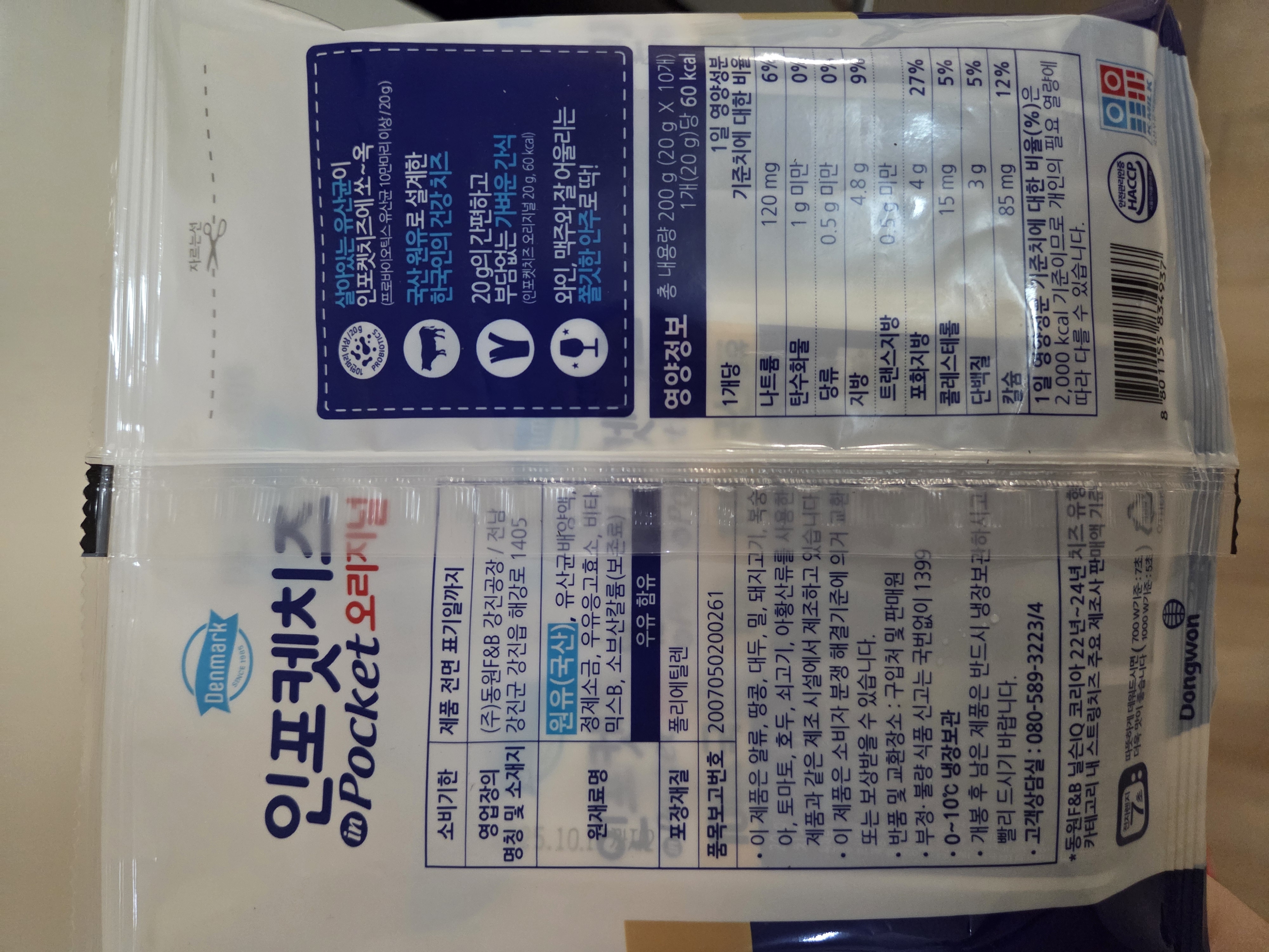 - 제품명: 덴마크 인포켓치즈 오리지널 (동원F&B)