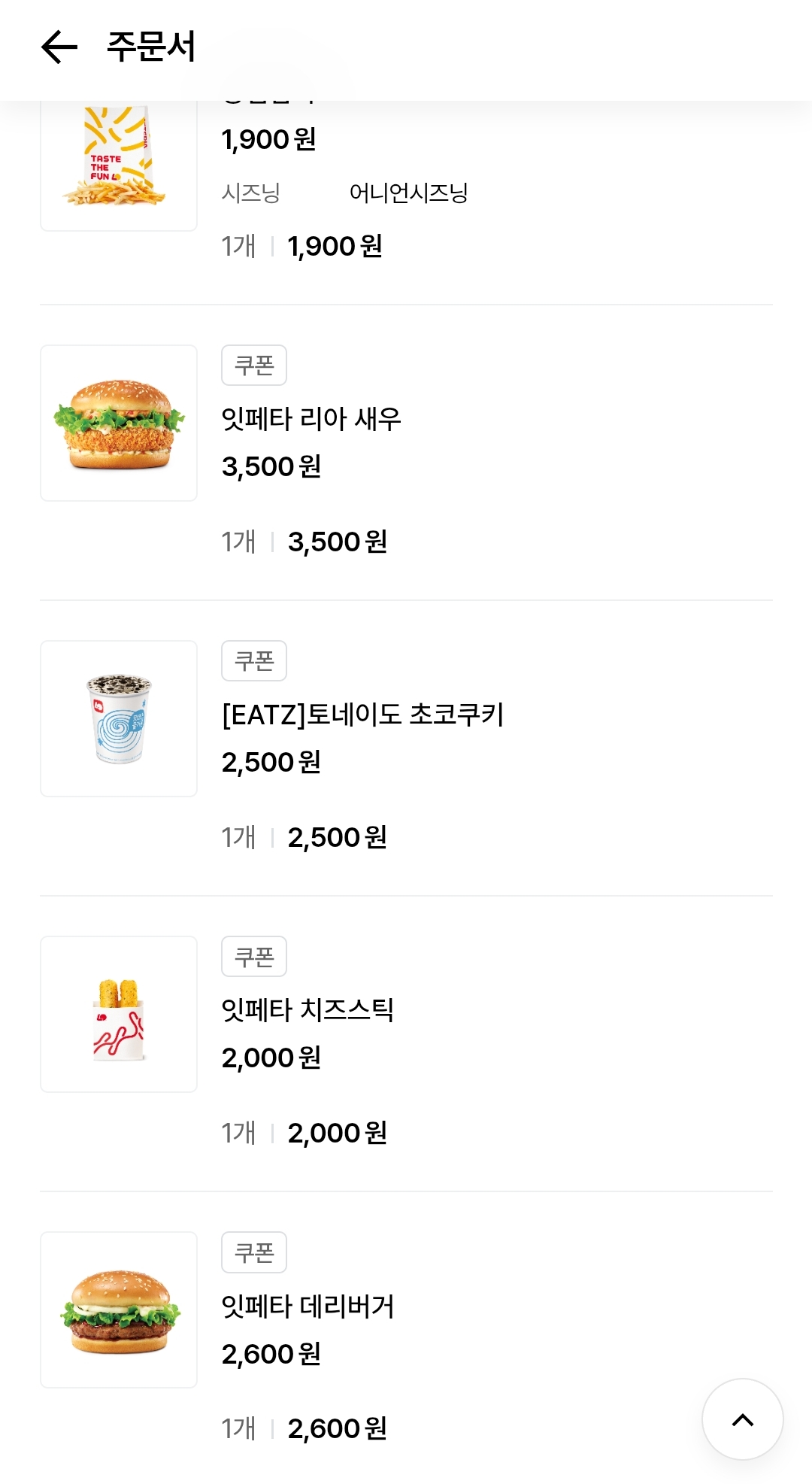 인기상품 50% 할인과 픽업 선착 5000원 쿠폰을 이용해 저렴하게 롯데리아를 이용했어요.