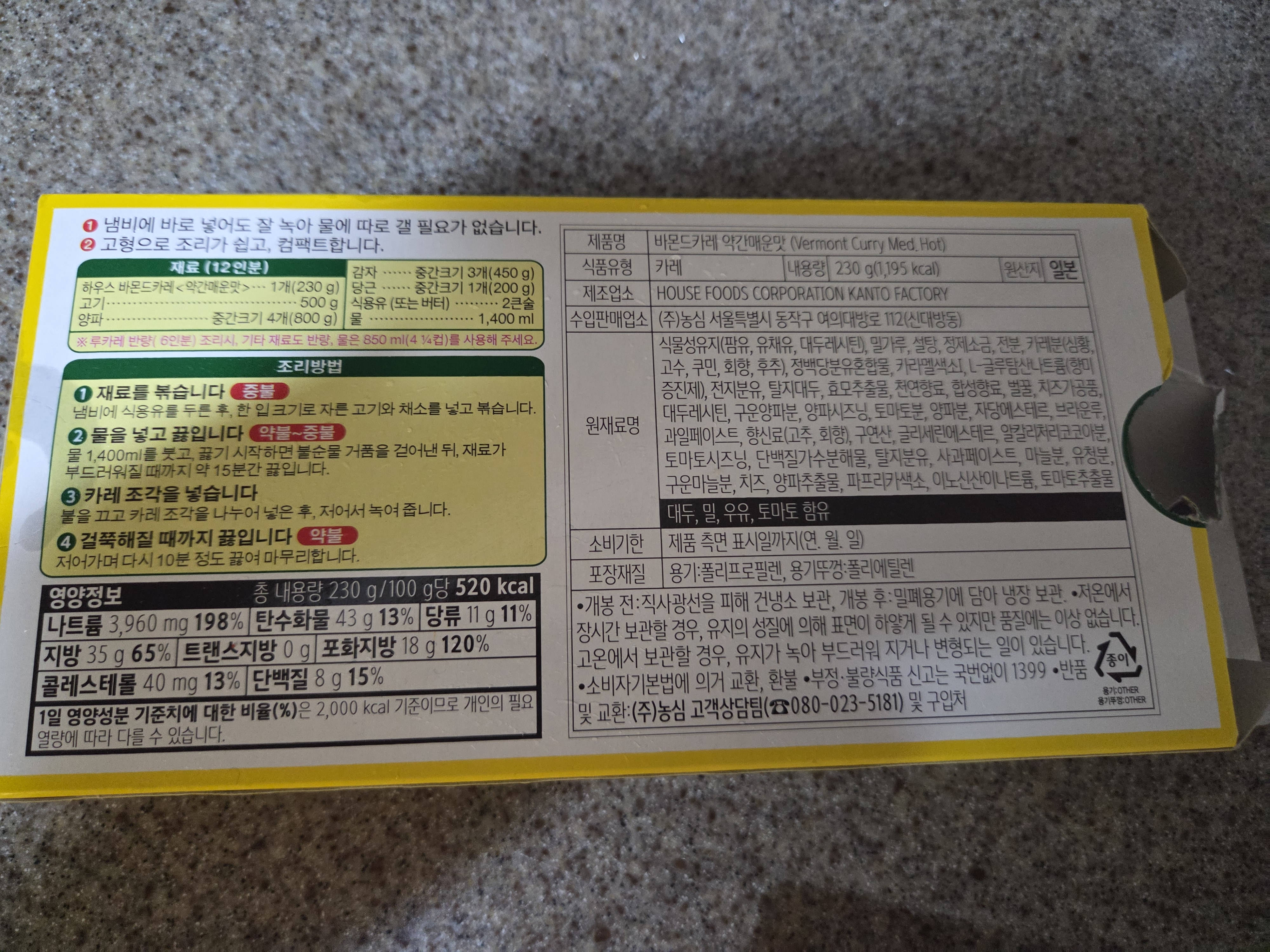 카레 블록 형태로 되어 있어 요리가 매우 간단합니다.