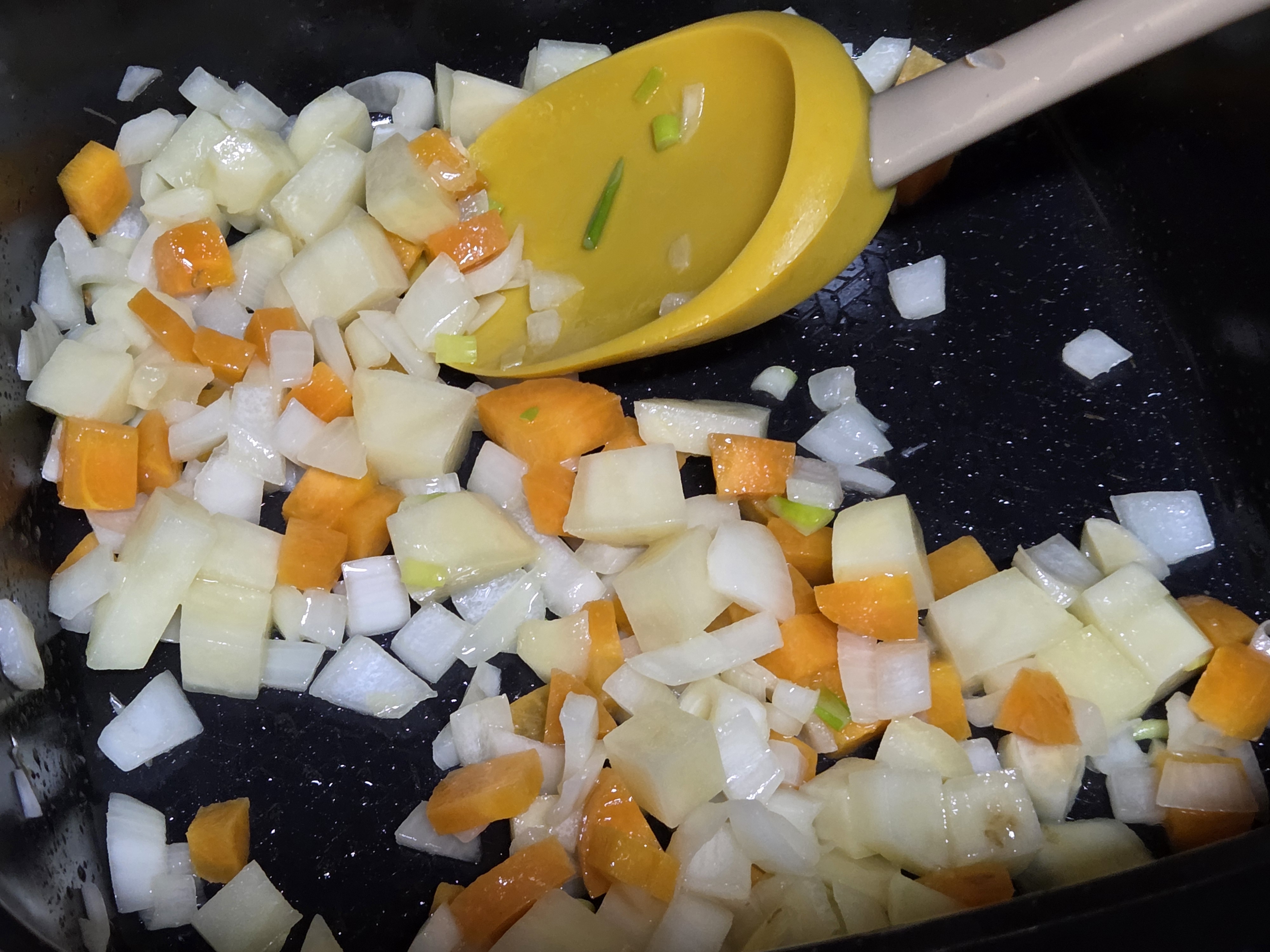 양파가 살짝 갈색이 될 때까지 볶으면 카레의 맛이 훨씬 좋아집니다.