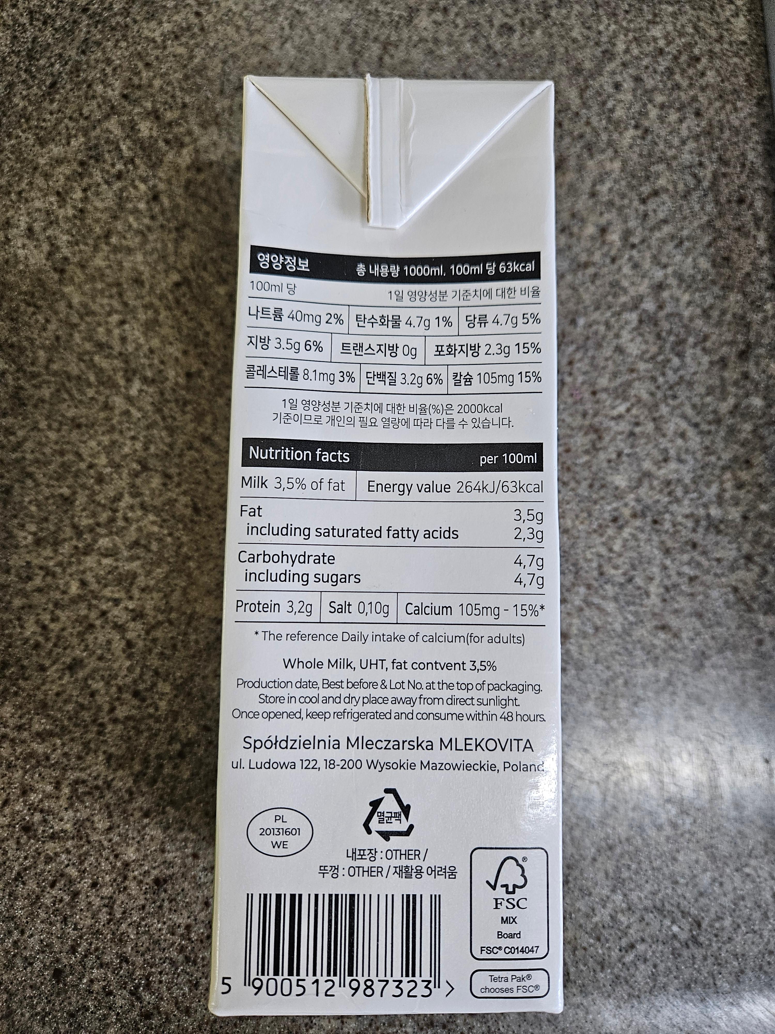 <폴란드 믈레코비타 멸균우유 갓밀크>