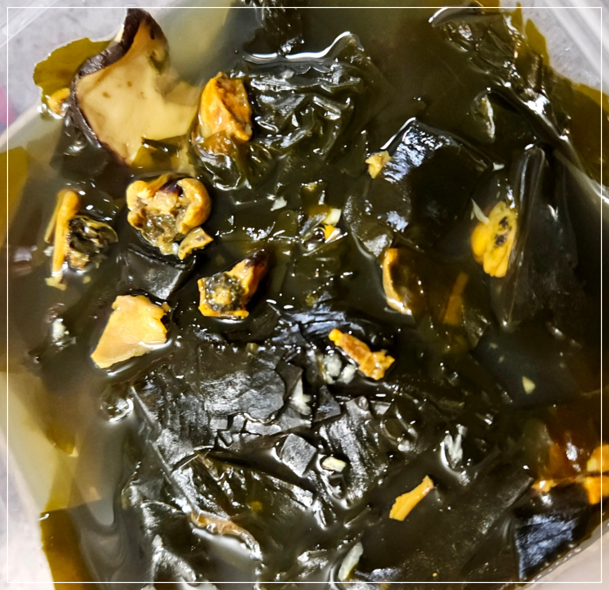 이렇게 준비된 표고버섯 홍합 미역국은 깊고 진한 국물 맛과 함께 건강에도 좋은 한 끼 식사로 적합합니다. 표고버섯의 풍미, 홍합의 감칠맛, 미역의 고소함이 어우러져 누구나 좋아할 맛입니다. 특별한 날, 아니면 평범한 하루에도 부담 없이 즐기기 좋은 미역국이니 한 번 시도해 보세요.