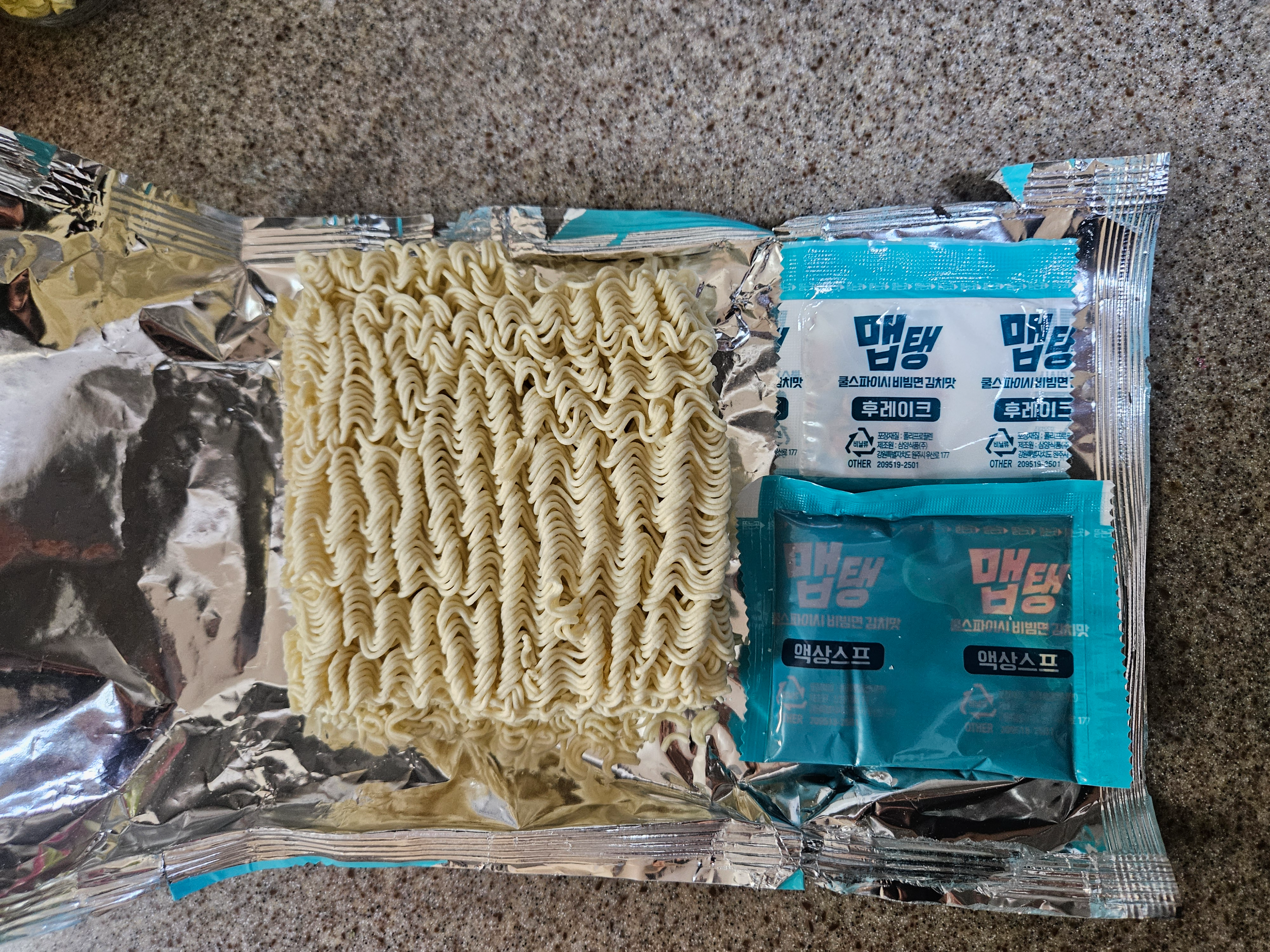 맵탱 비빔면은 그동안의 비빔면과 다르게 액상스프와 함께 건더기 스프가 들어있어요.