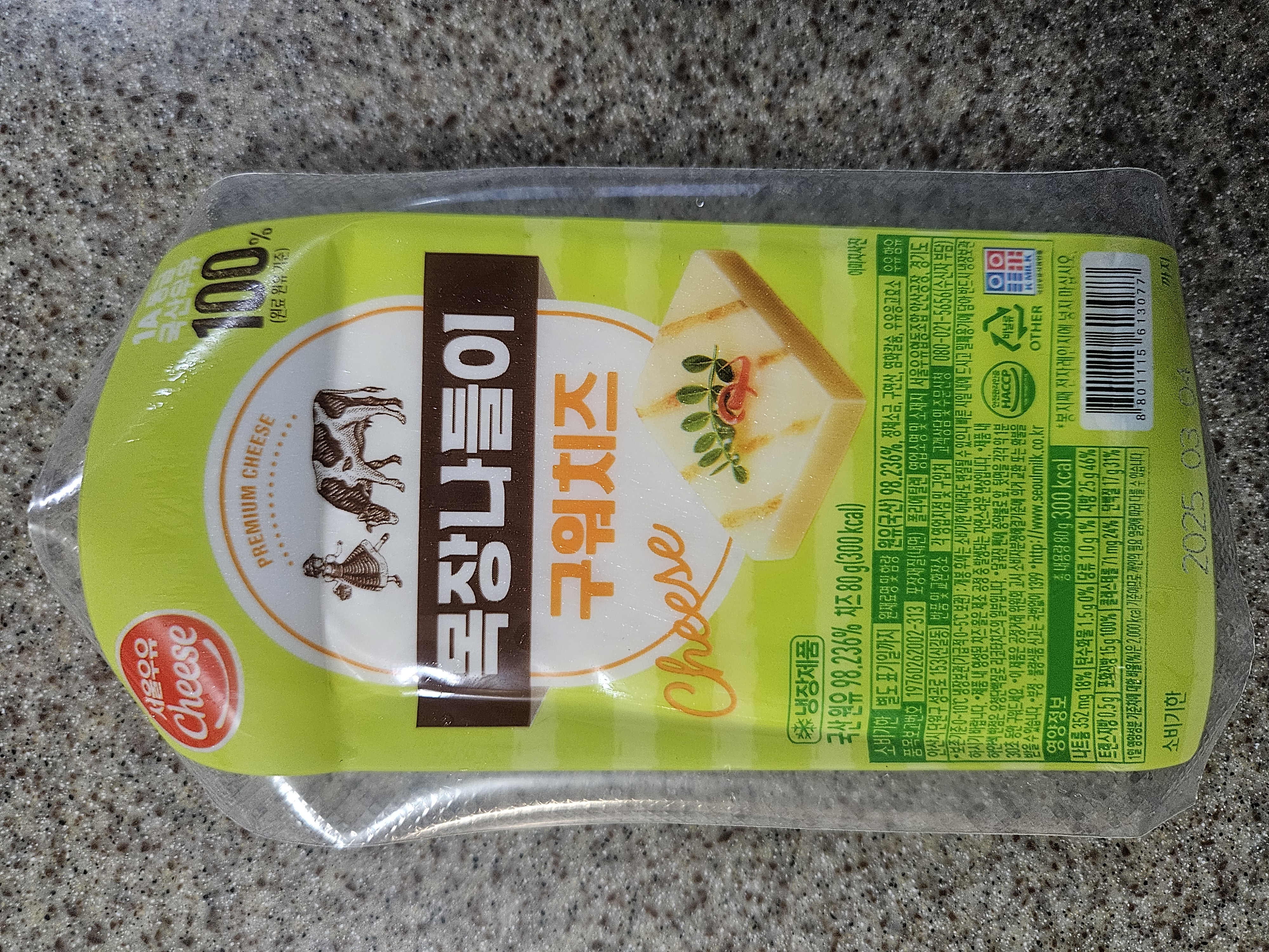 마트에서 목장나들이 구워먹는 치즈를 구매했어요.