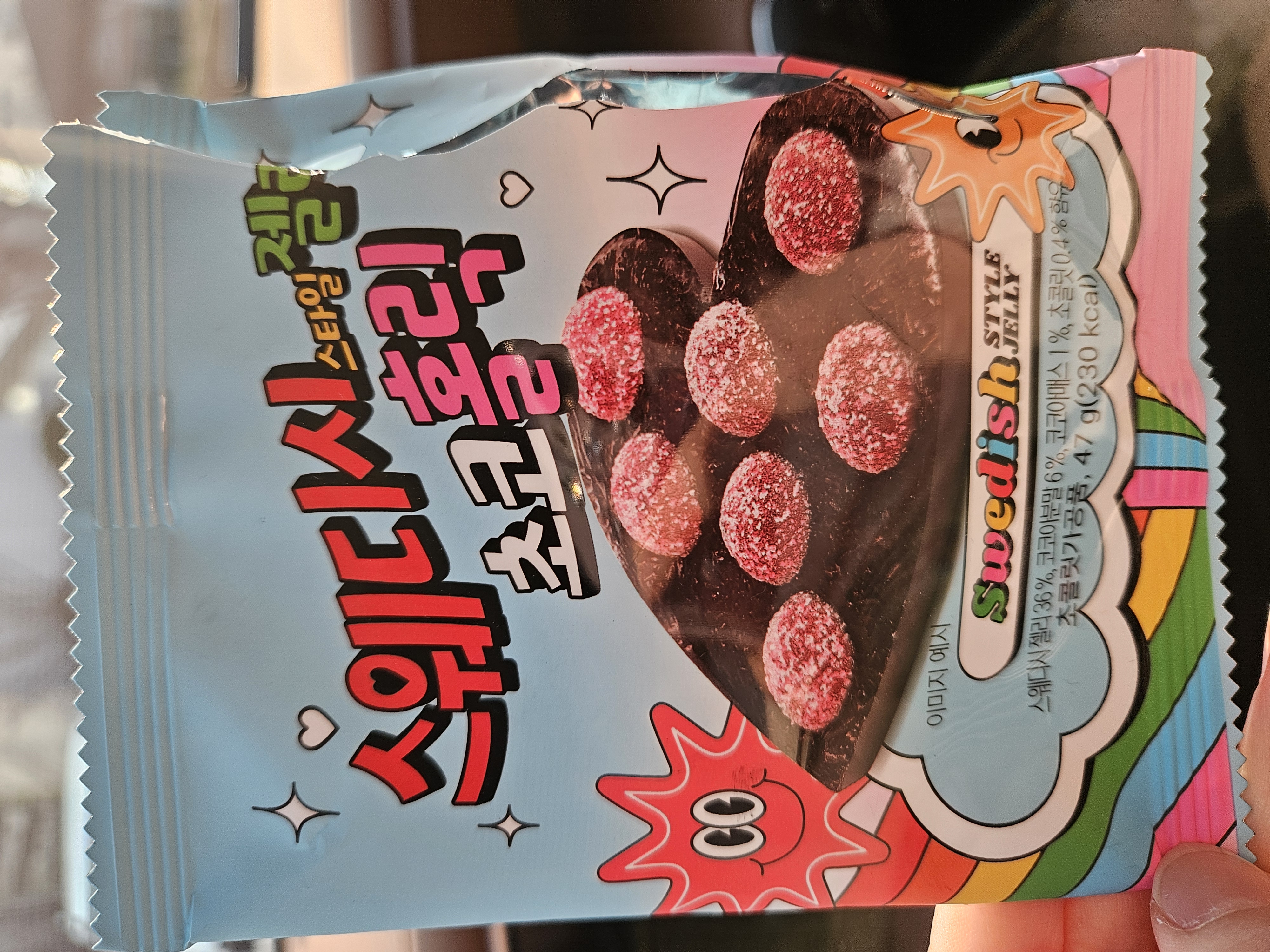 식감은 바삭거리면서 달콤한 초콜릿과, 새콤 쫀득한 스웨디시 젤리의 조화.