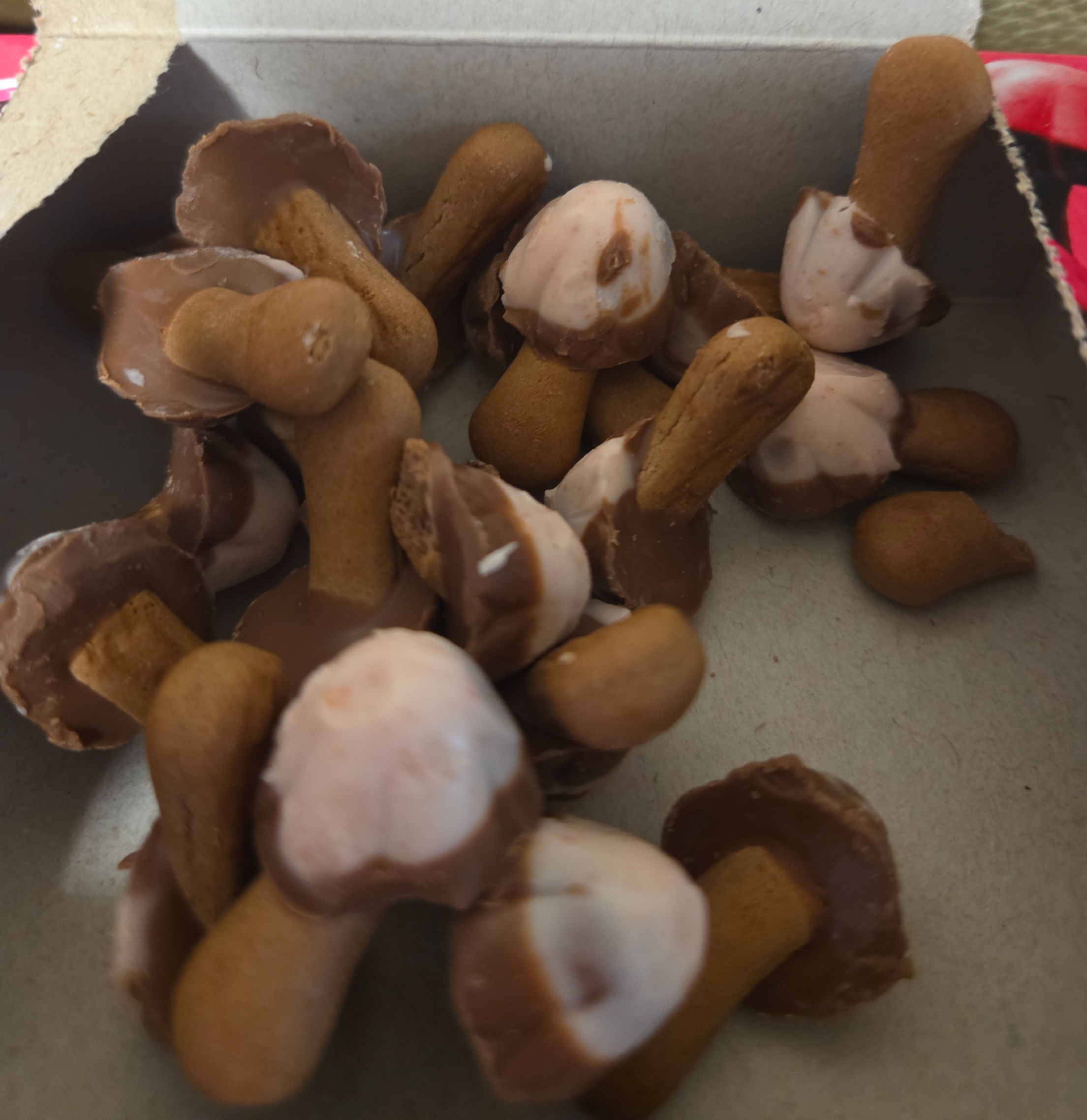 핑크빛 패키지는 역시 시각부터 '사랑스럽다'는 감정이 확 올라오더라고요. 작은 버섯 모양의 과자가 각각 귀엽게 담겨 있는 모습은 인스타 감성으로 찰칵—사진부터 찍고 먹게 만드는 매력이 있습니다.