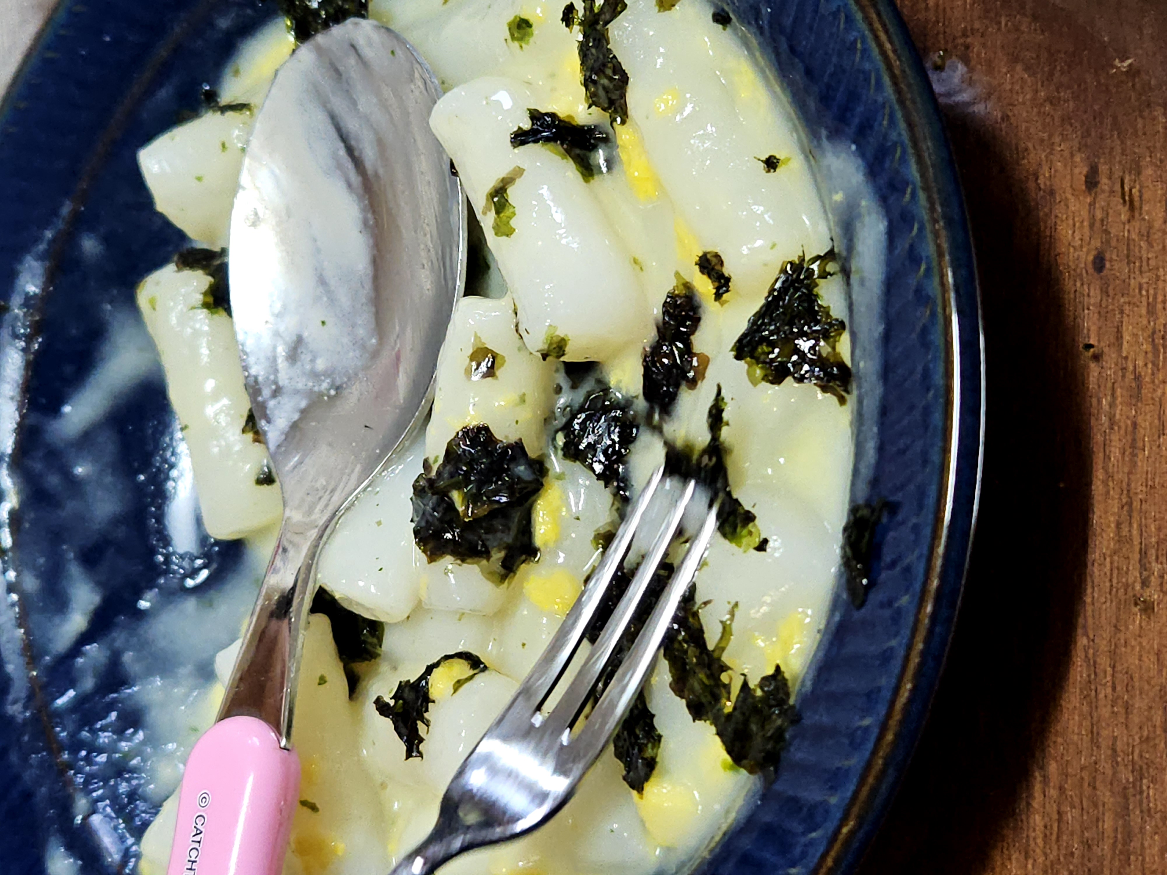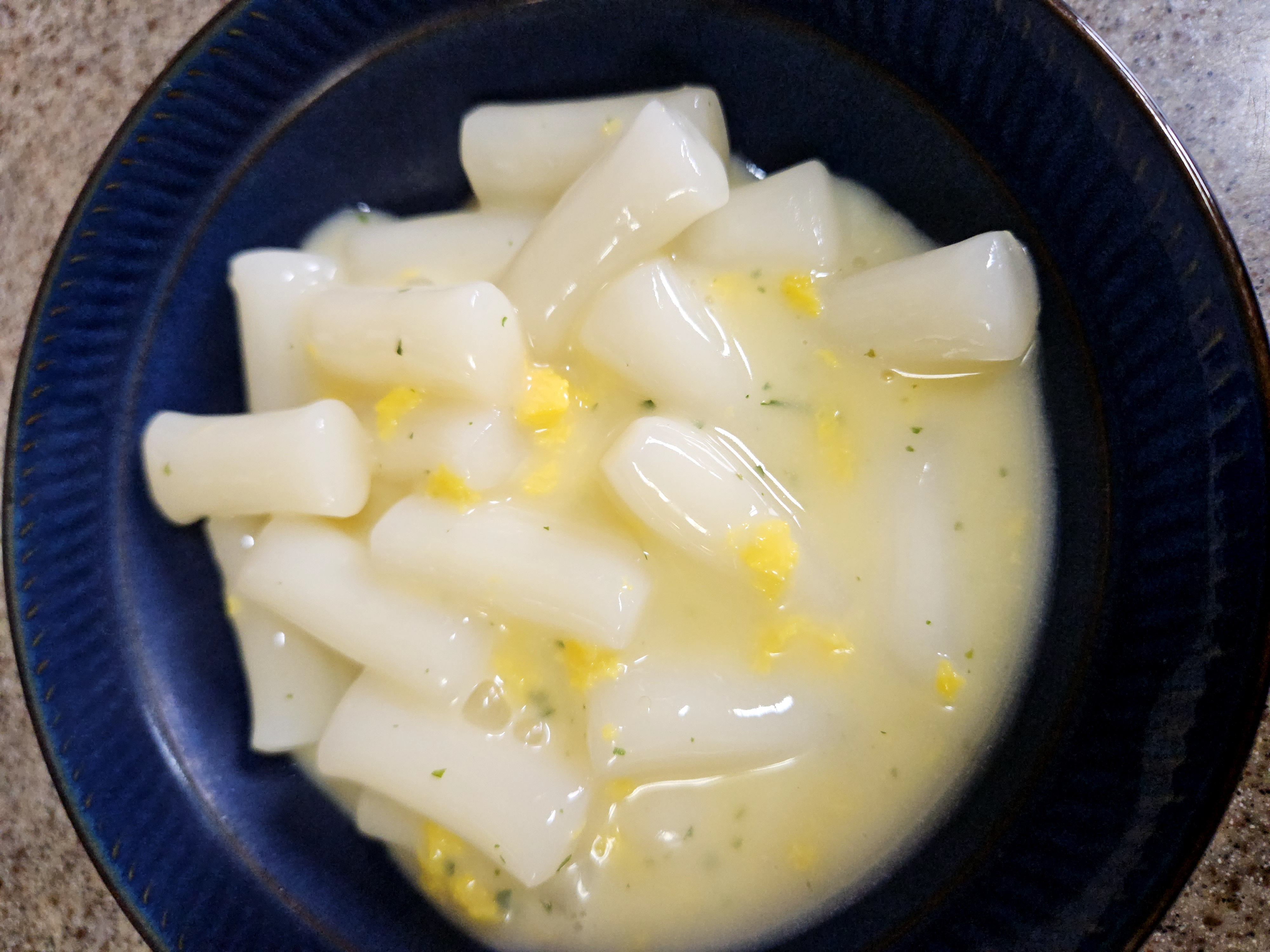 우리가 아는 그 크림떡볶이의 맛보다는 조금 많이 연해요.