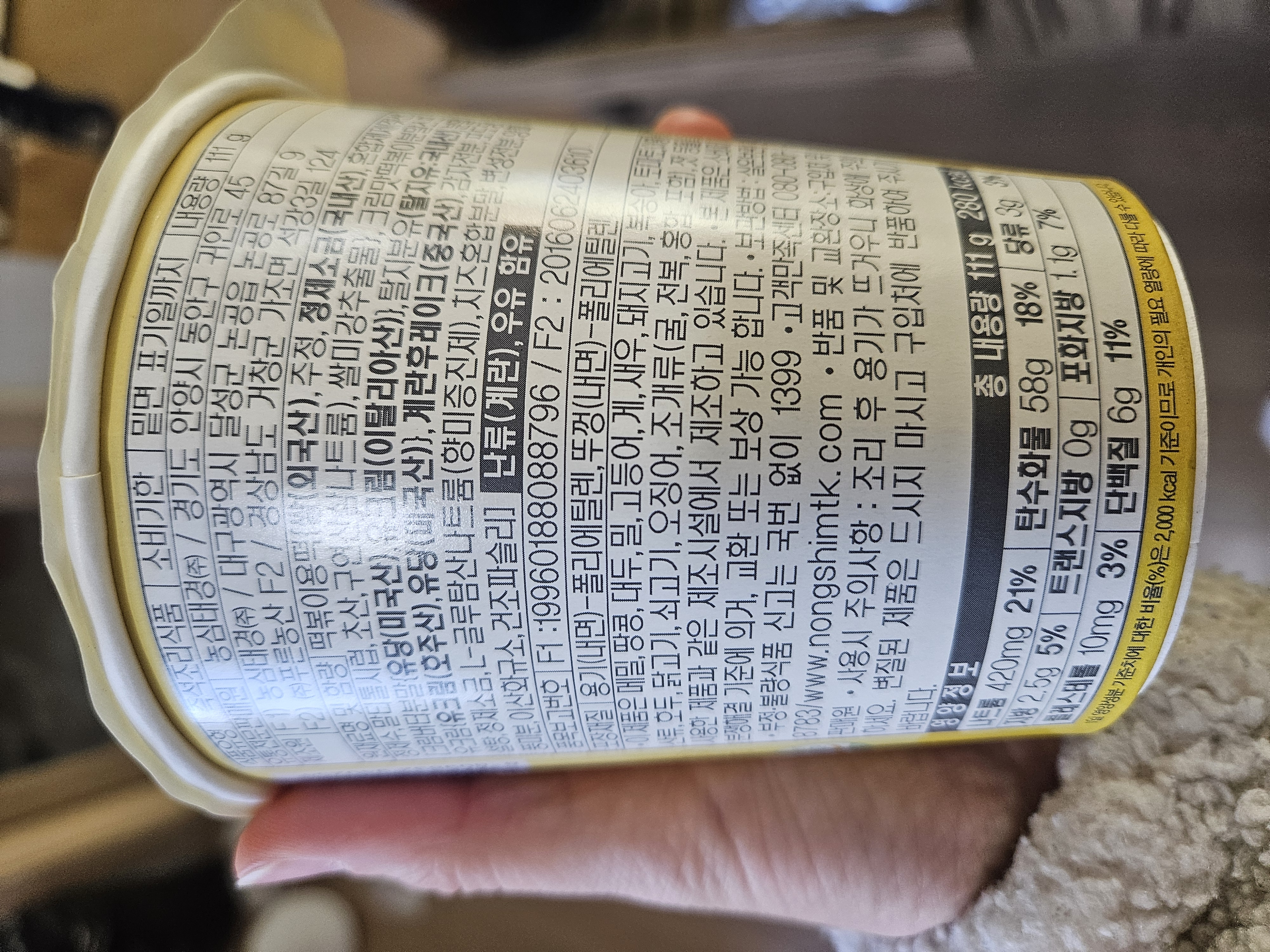 1. 뚜껑을 완전히 뜯어낸 후 떡과 분말스프를 모두 뜯어서 넣는다.