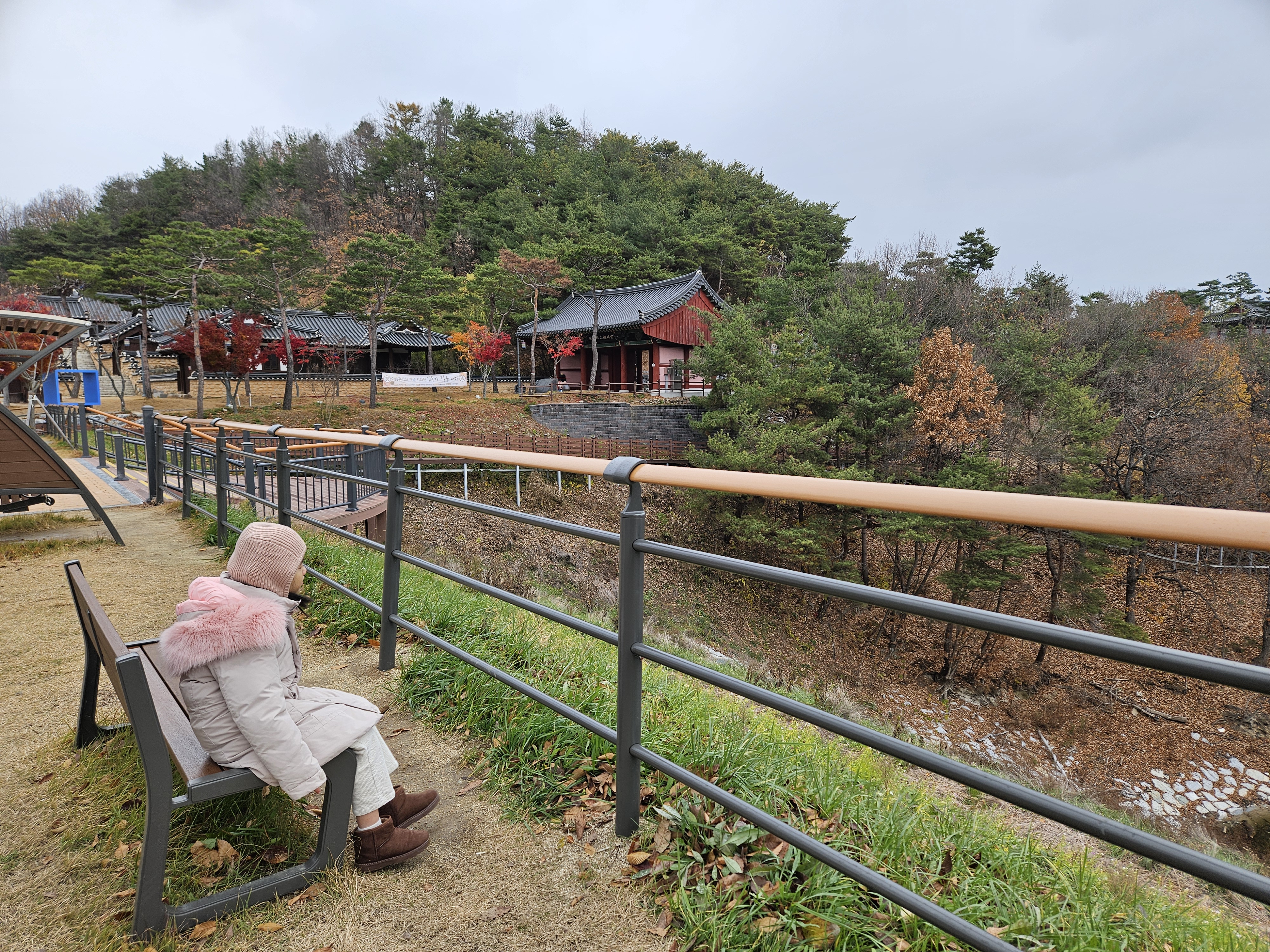 다른 일행들은 선성 수상길을 걸으러 갔고, 저는 이미 여러번 방문했던 곳이라 아이와 함께 위에서 경치를 즐기며 기다렸어요. 앉아있을수있어 좋아요.
