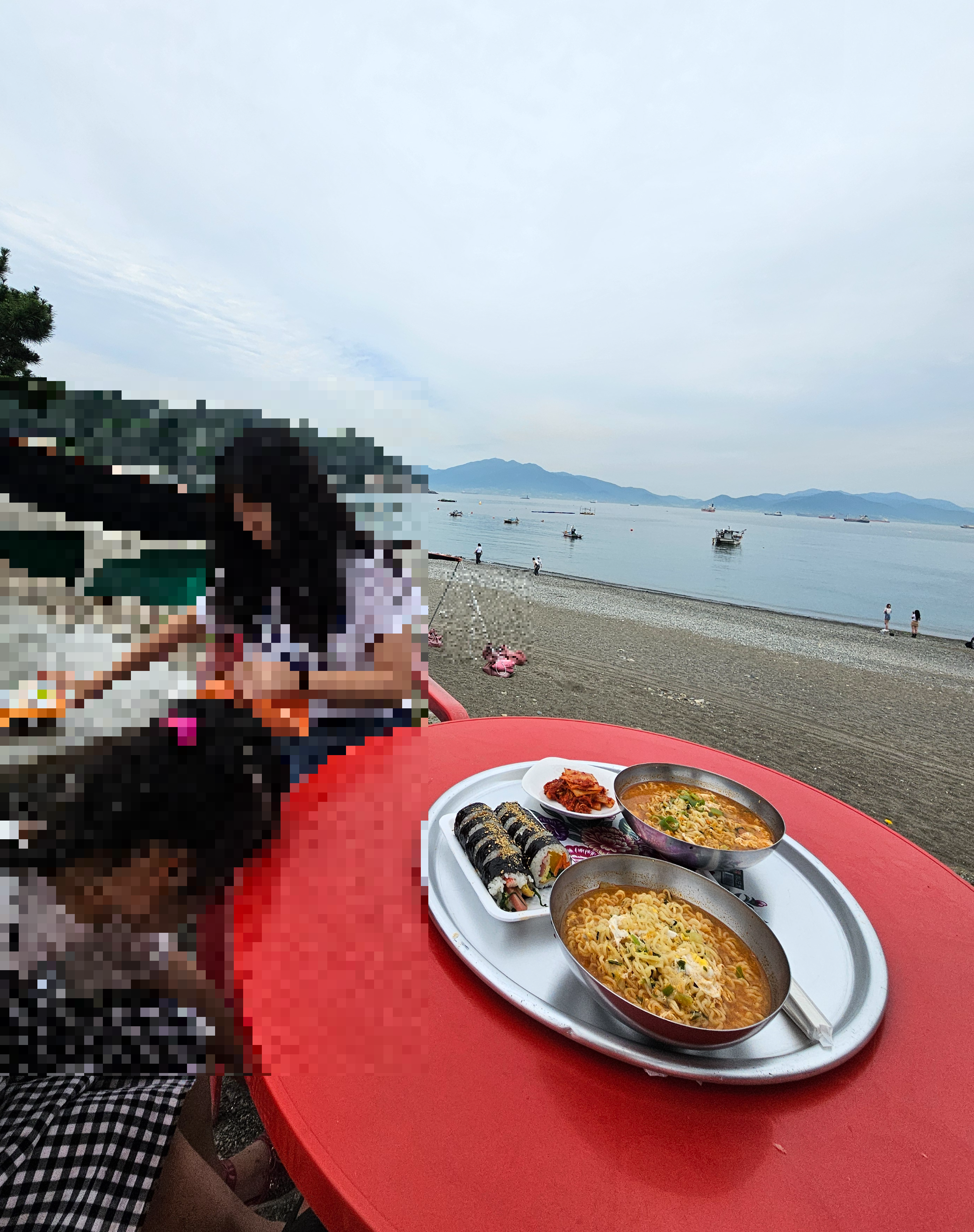 뻥 뚫린 바다를 보며 먹는 따뜻한 라면과 김밥..
