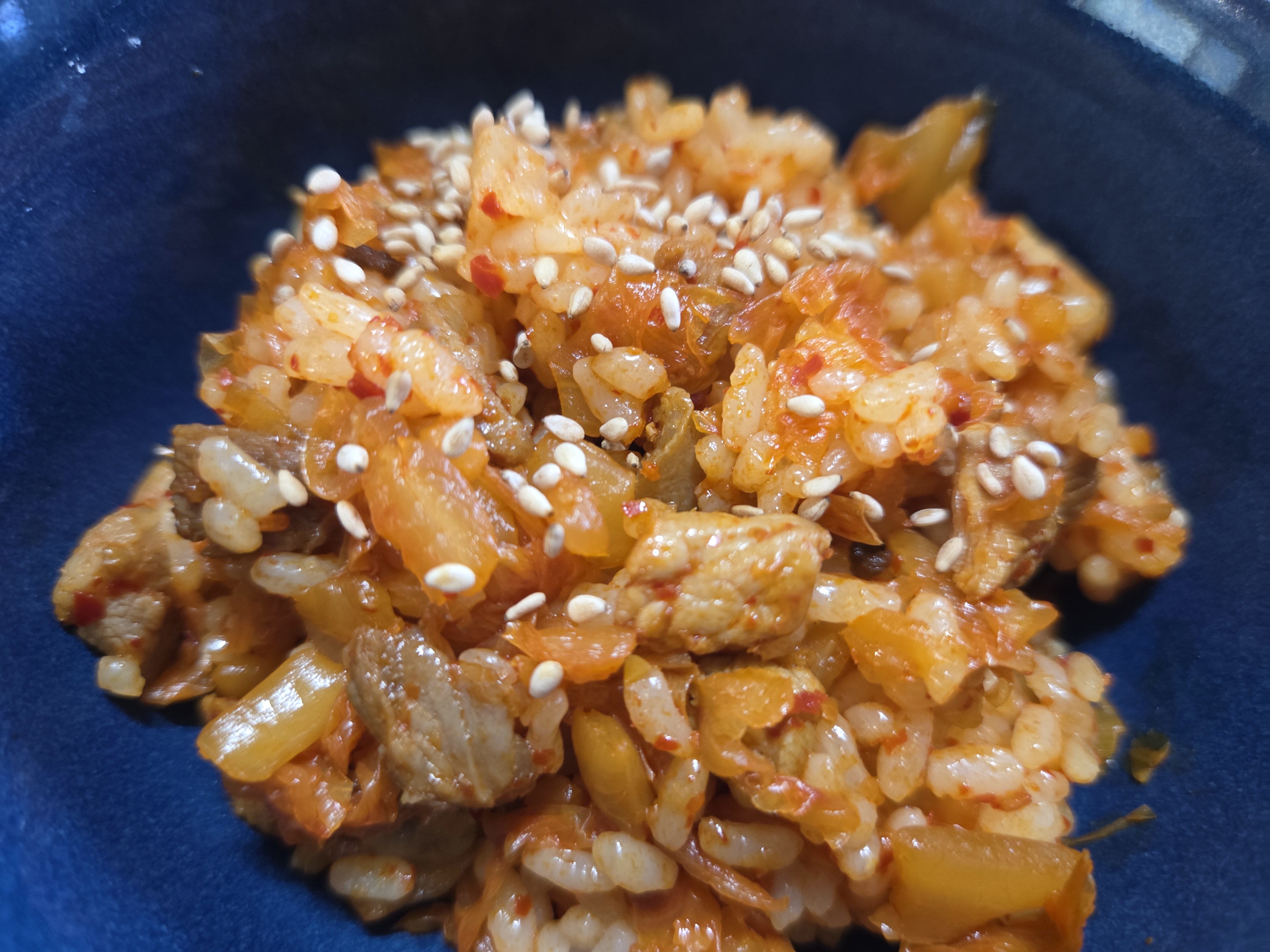 특히 신김치가 충분히 든 레시피는 톡 쏘는 김치 향이 돼지기름과 만나면서 진한 풍미가 살아나는 것이 가장 큰 매력이에요. 고기집에서 볶아먹는 밥 느낌이예요.