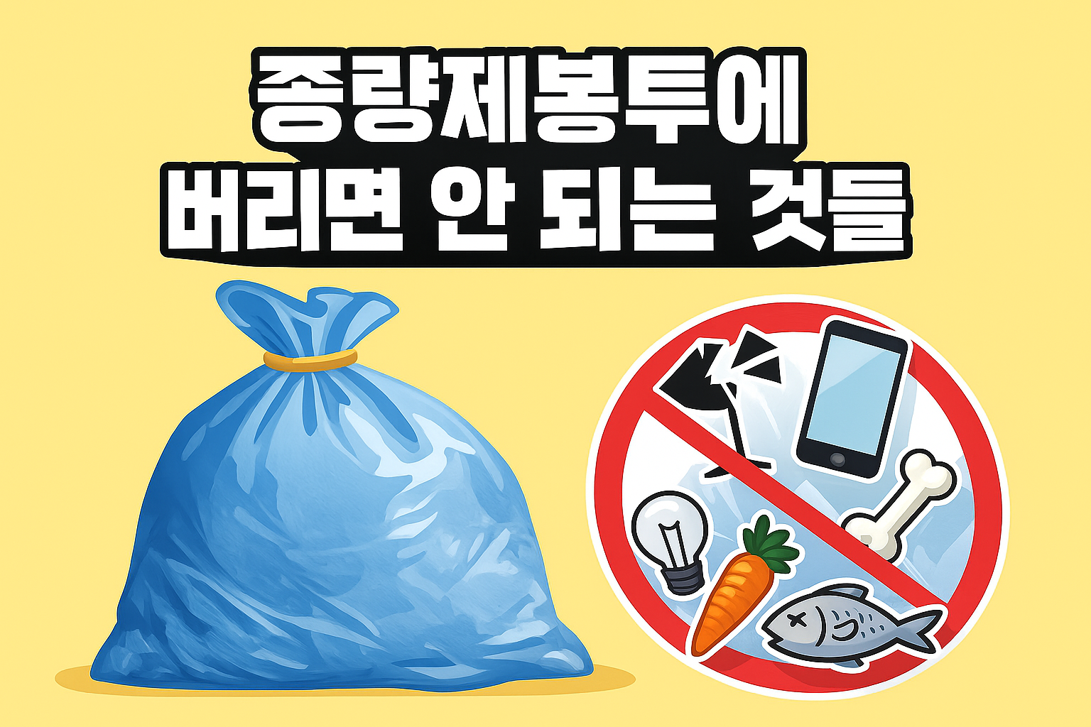 특히 음식물, 유리, 전자제품, 위험물 등은 종량제봉투에 절대 버리면 안 되는 대표적인 품목이에요.