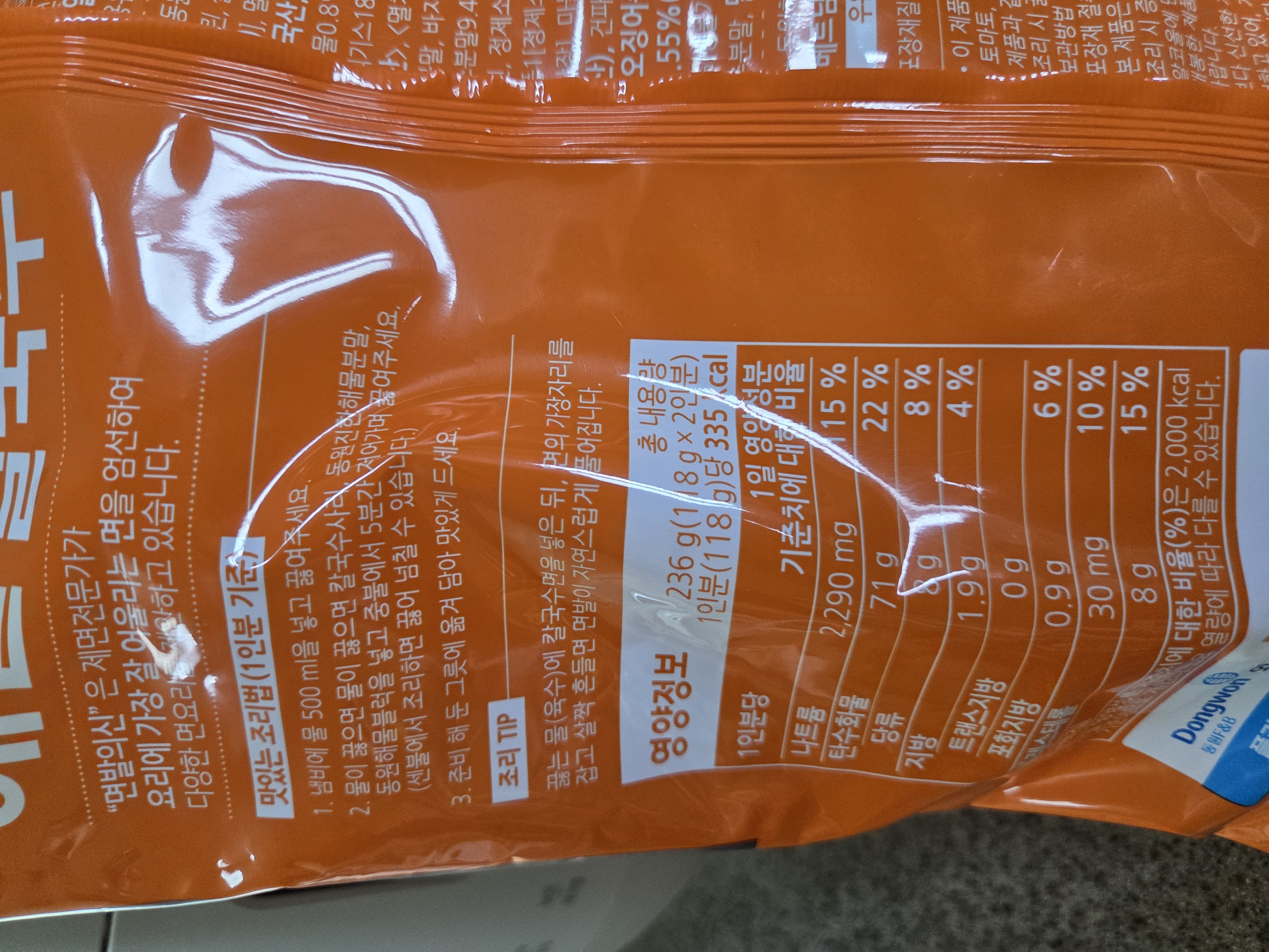 - 제품명: 동원 면발의 신 해물칼국수 (2인분, 236g)