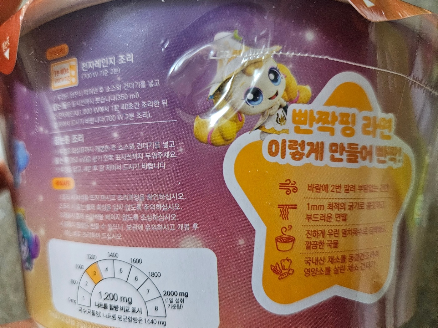 반짝핑 라면의 특징이에요.