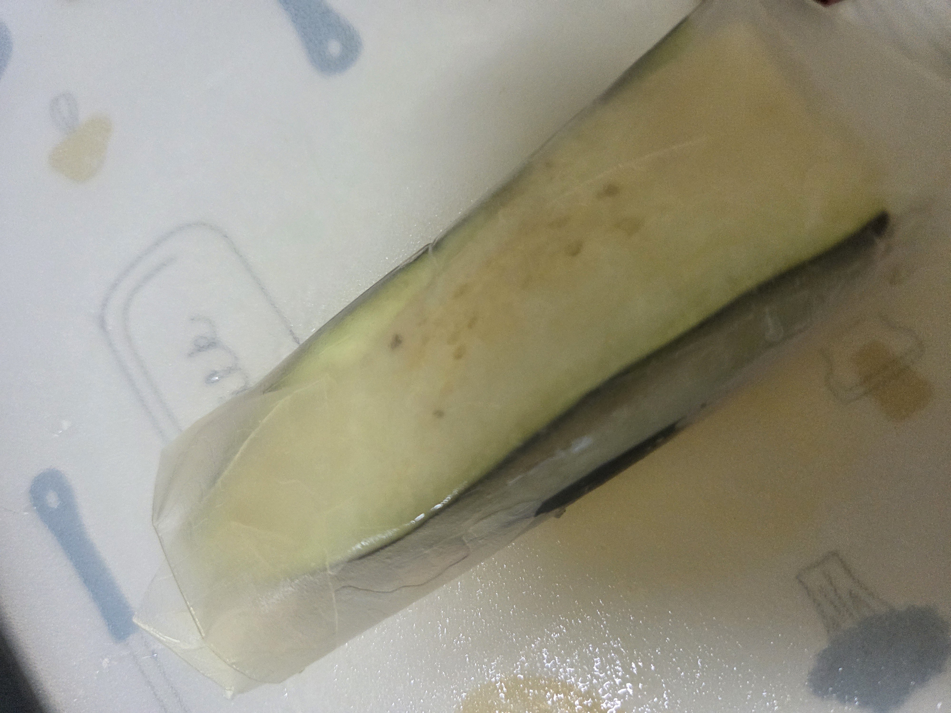 불린 라이스페이퍼를 도마에 펼치고 가지 한 조각을 올립니다. 입맛에 따라 가지 위에 치즈, 다진 마늘, 대파, 청양고추 등을 살짝 얹어도 좋아요. 그다음 라이스페이퍼로 가지를 돌돌 말아 봉투처럼 감싸주세요.