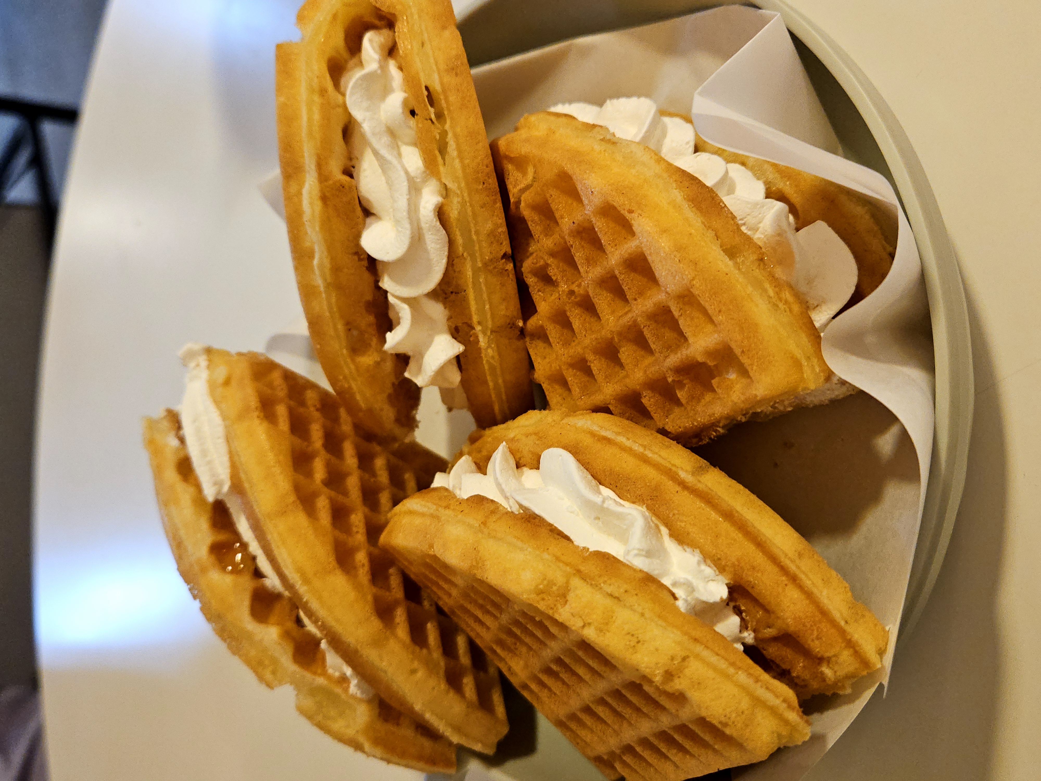 - 냉동 와플은 반드시 바삭하게 구운 후 사용해야 크림과 함께 먹어도 눅눅해지지 않아요.
