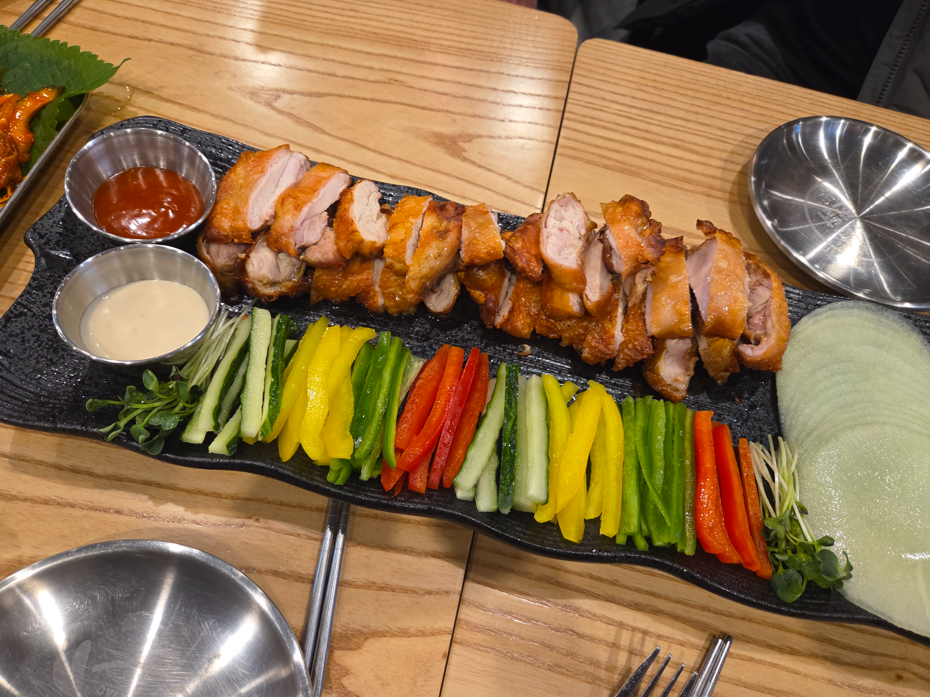 - 신선한 채소와 함께 먹는 쌈 치킨