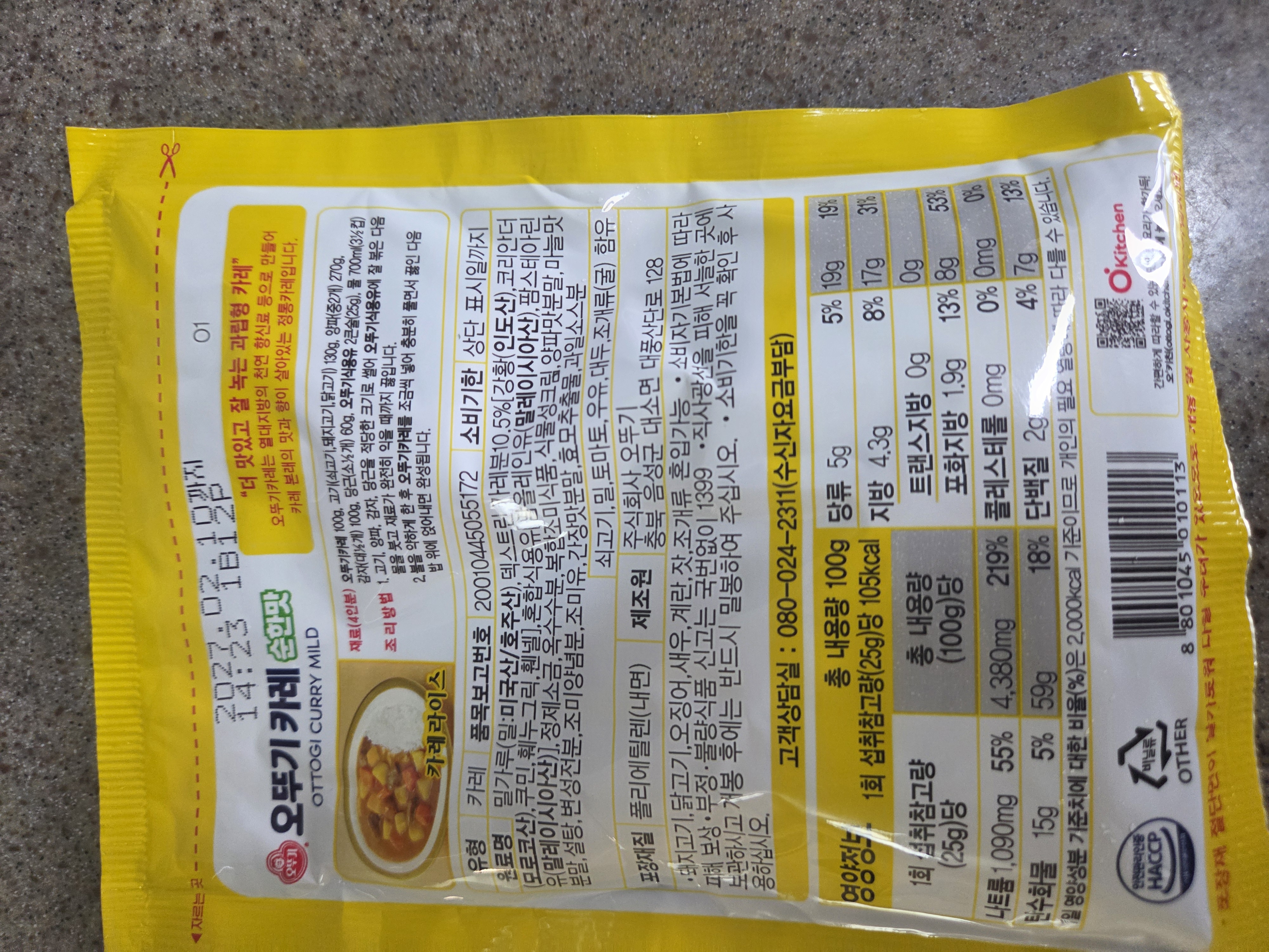 - 제품명: 오뚜기카레(순한맛)