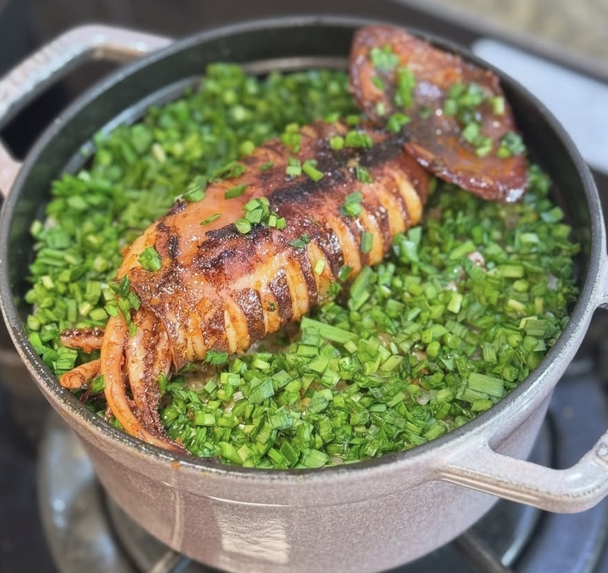한 그릇 안에 바다의 풍미와 따뜻한 밥의 포근함을 담아낸 통오징어 솥밥.